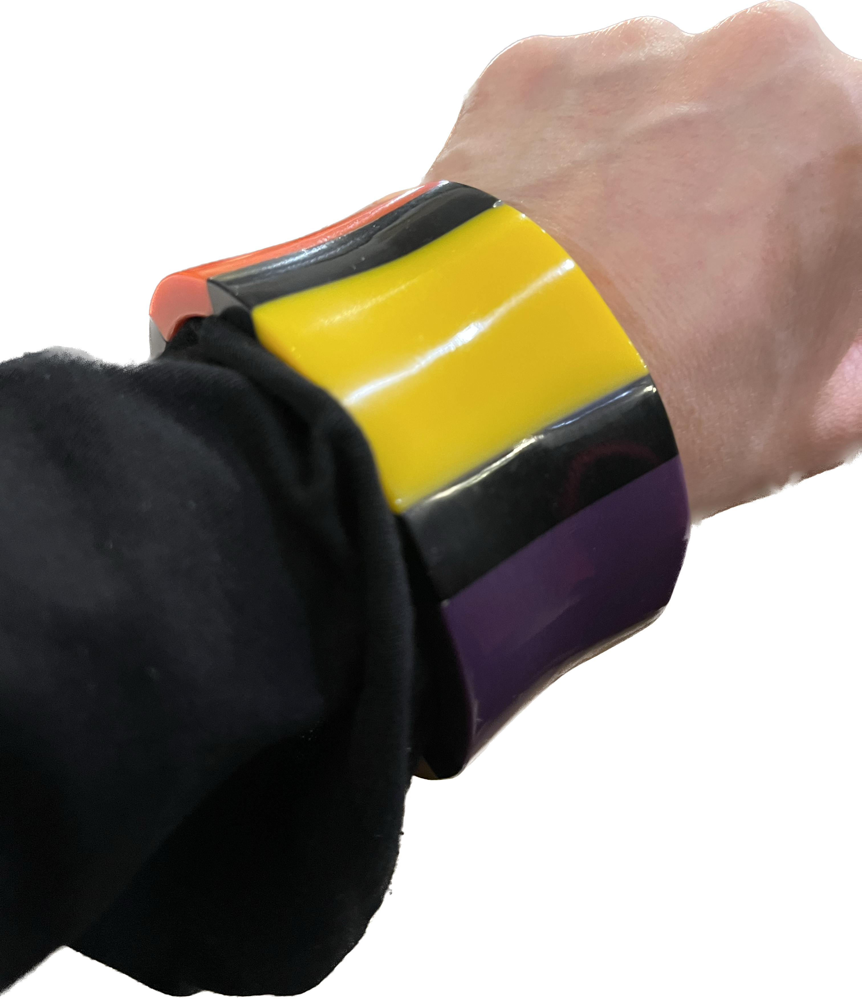 夏のコーディネートに彩りを加える、ミックスカラーが楽しいカラーブロックレジンバングル。
