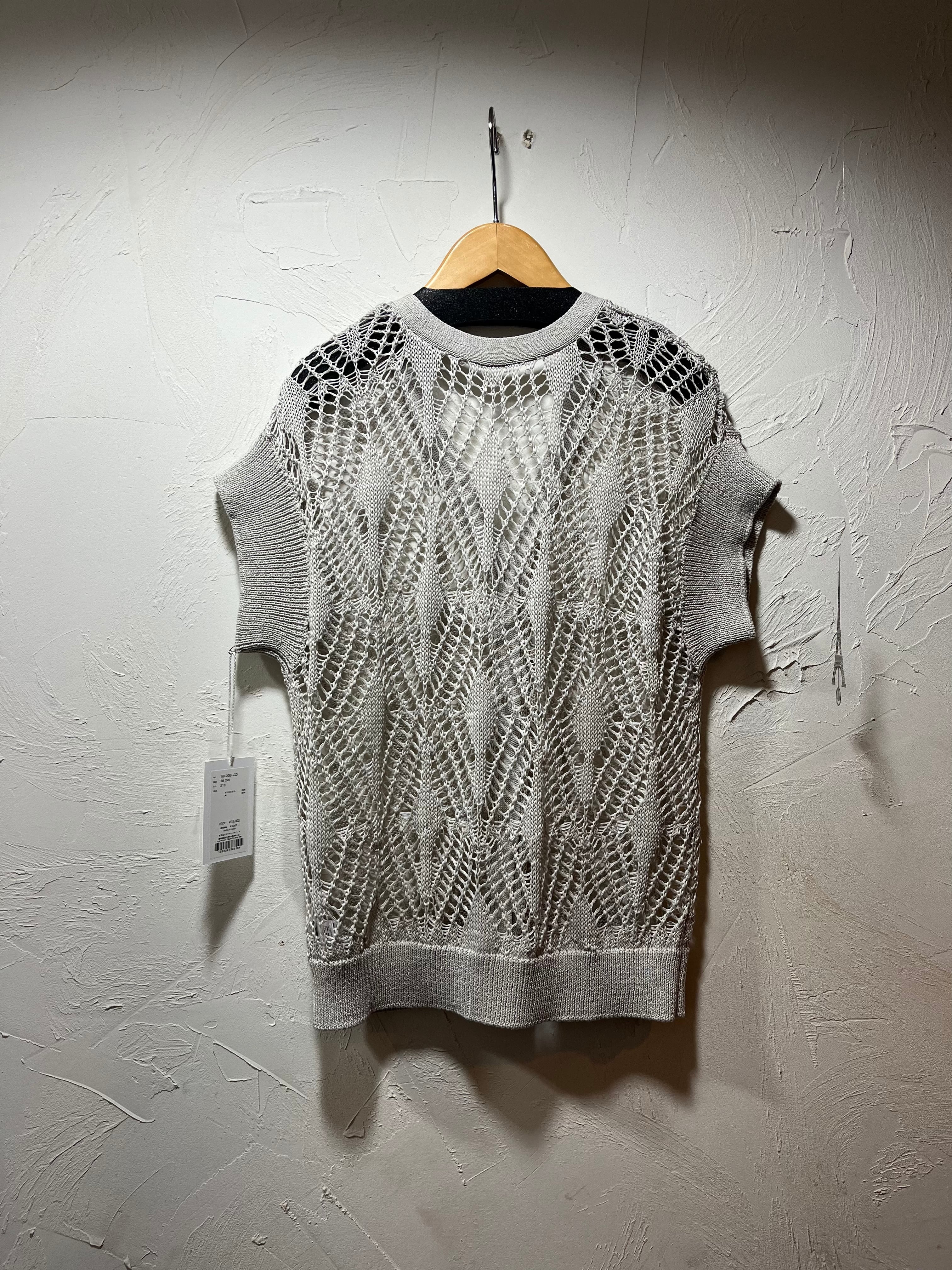 AECA BLANC ポリエステルコットンかぎ針ニットベストカーディガン☆