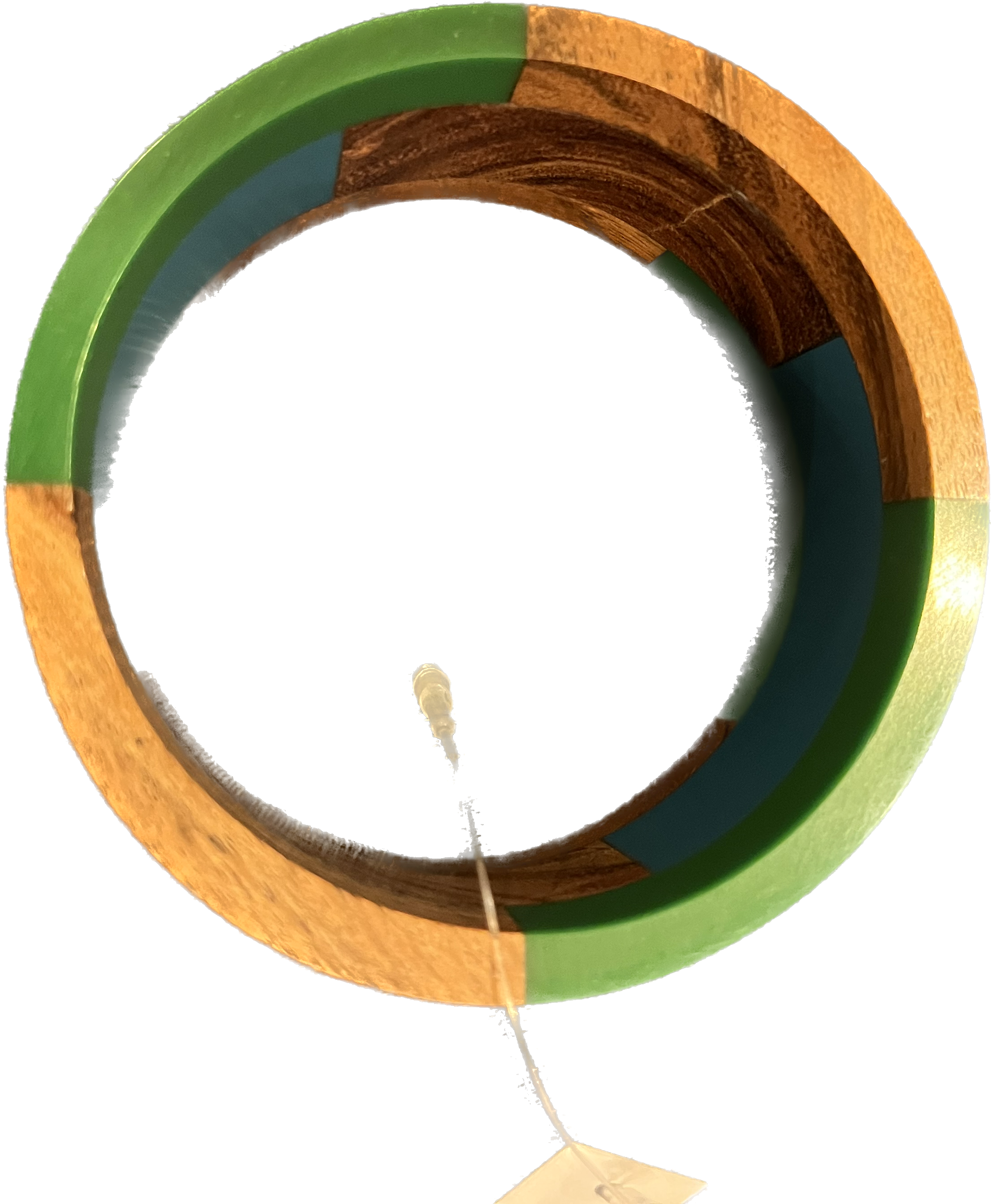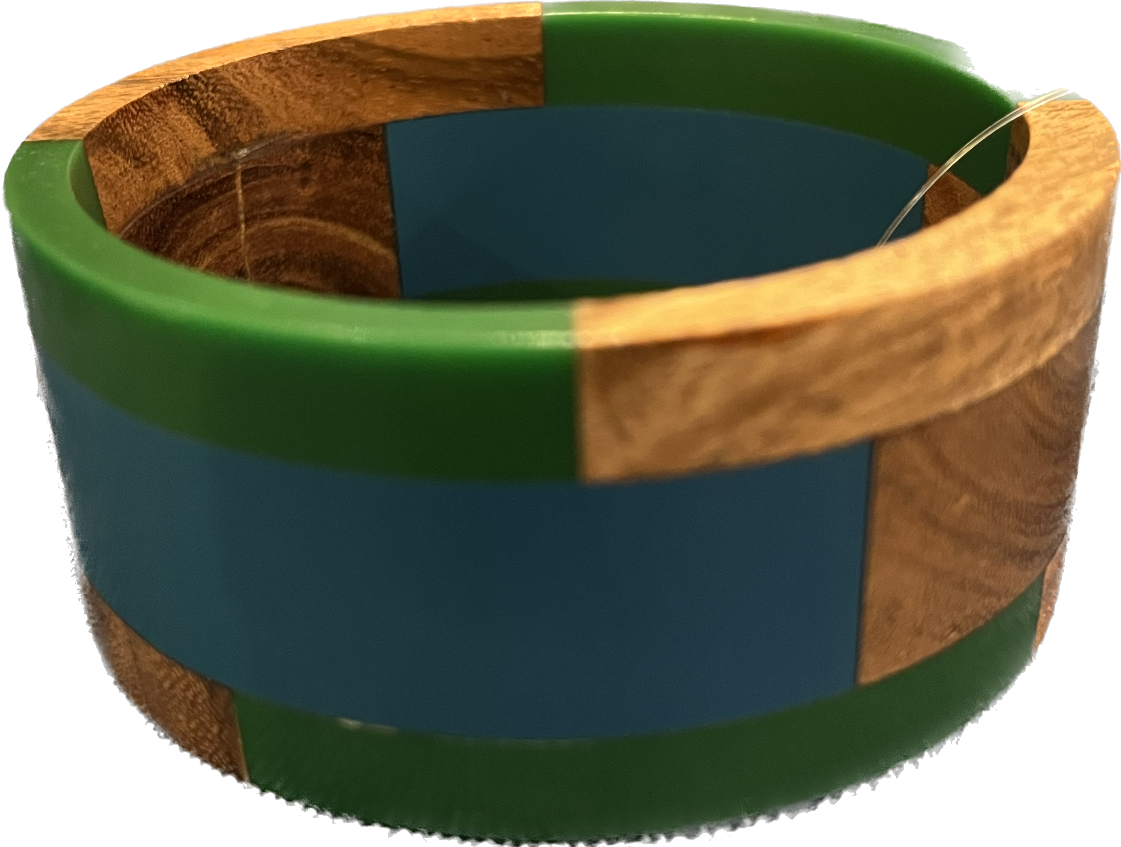 ブルー×グリーンのカラーにナチュラルなウッド素材の組み合わせがキュートなバングル。