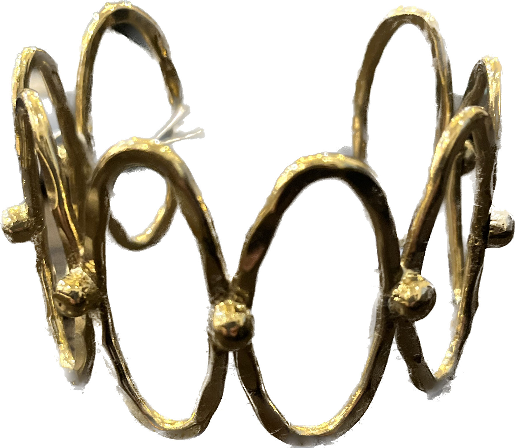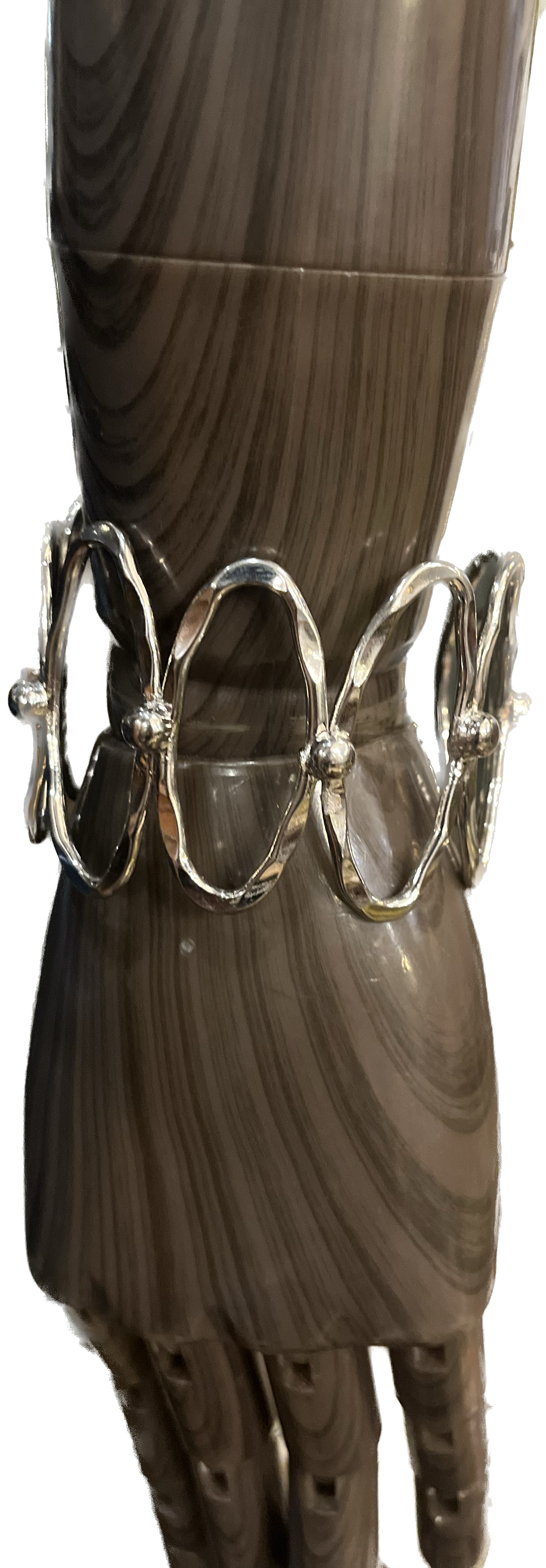 縦長の楕円が連なったデザインが特徴のこのオーバルメタルバングル。