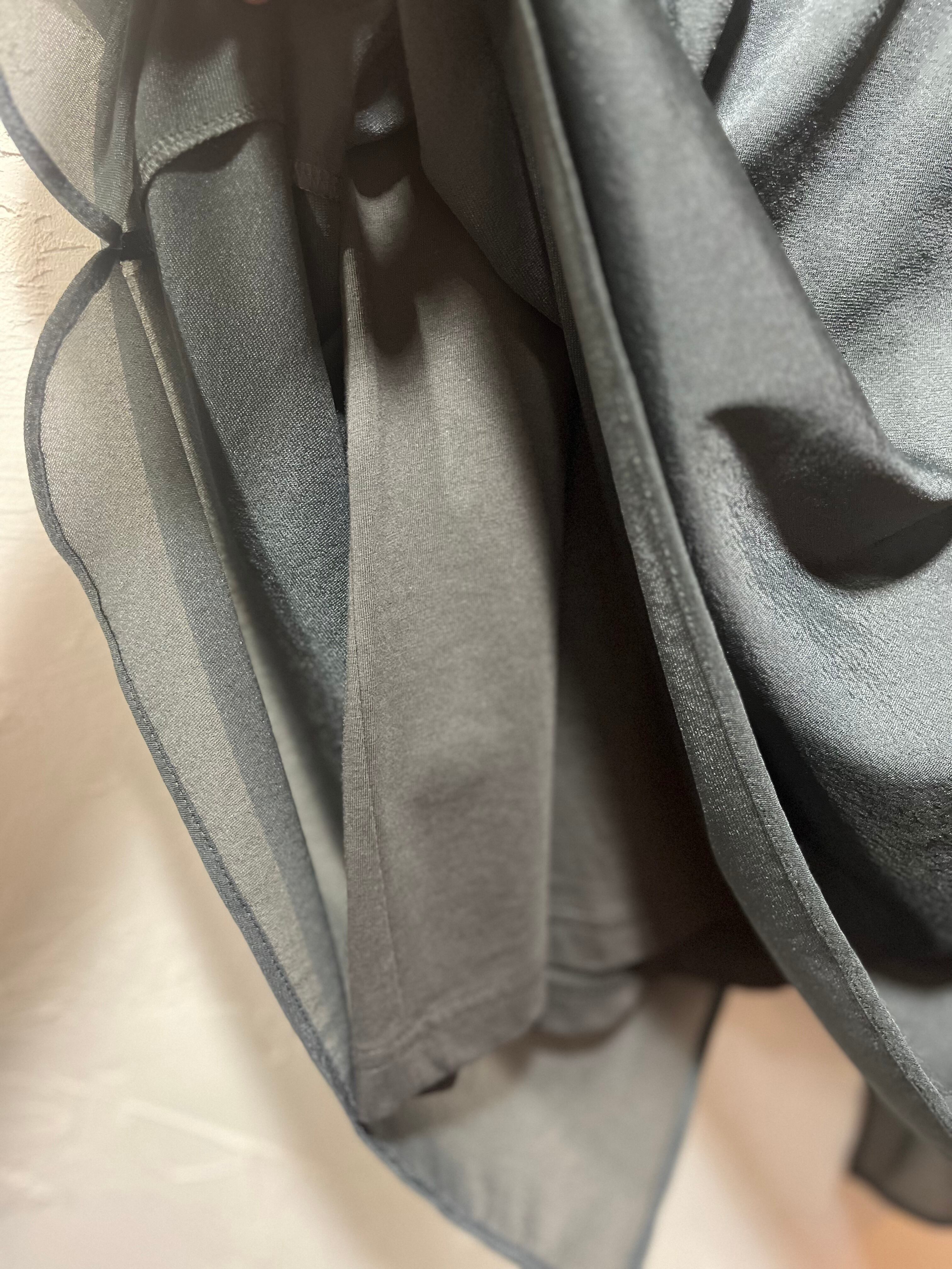 スモーキーなチャコールカラーがシックな雰囲気を醸し出すシアードッキングプルブラウス。
