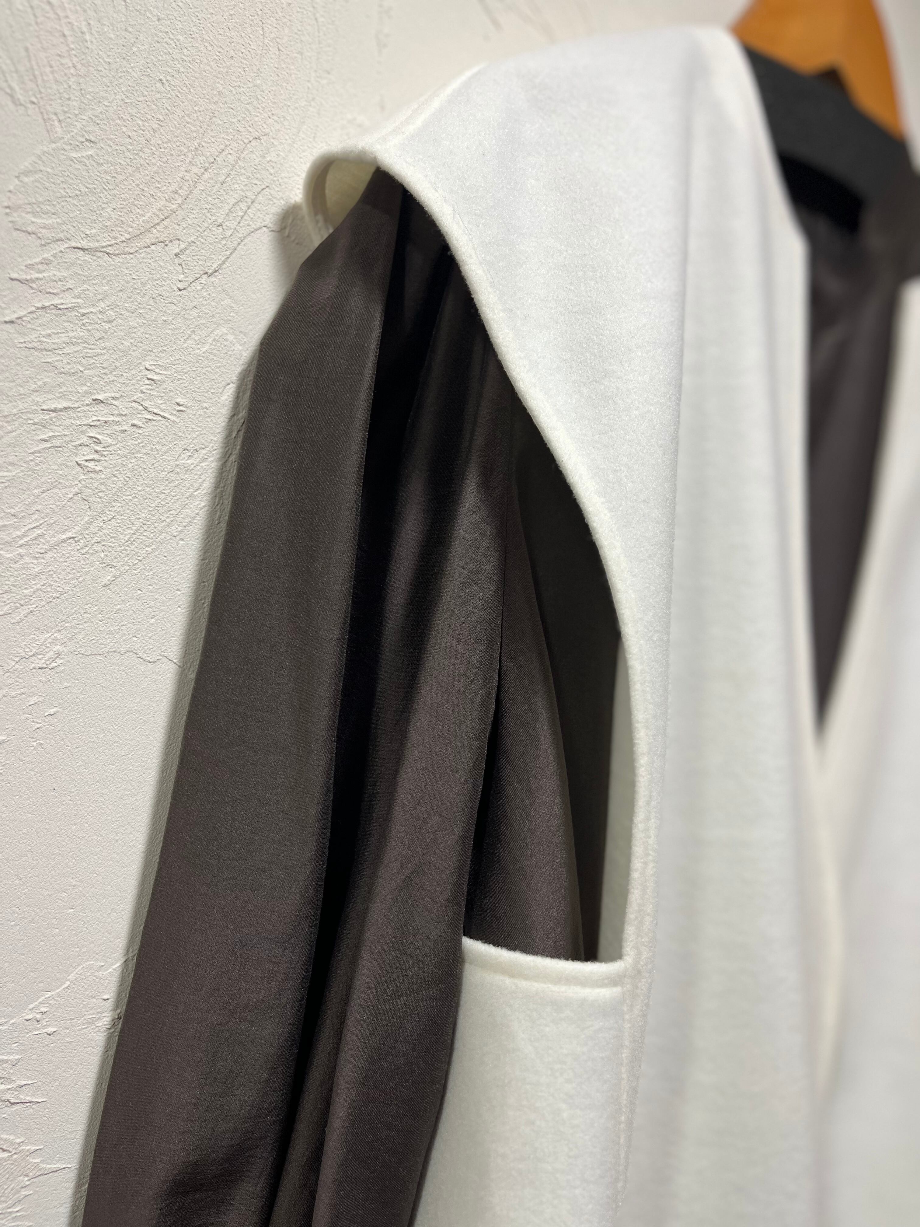 上品なオフホワイトカラーが魅力的なBlue Fronceのフランネル素材カットベスト。