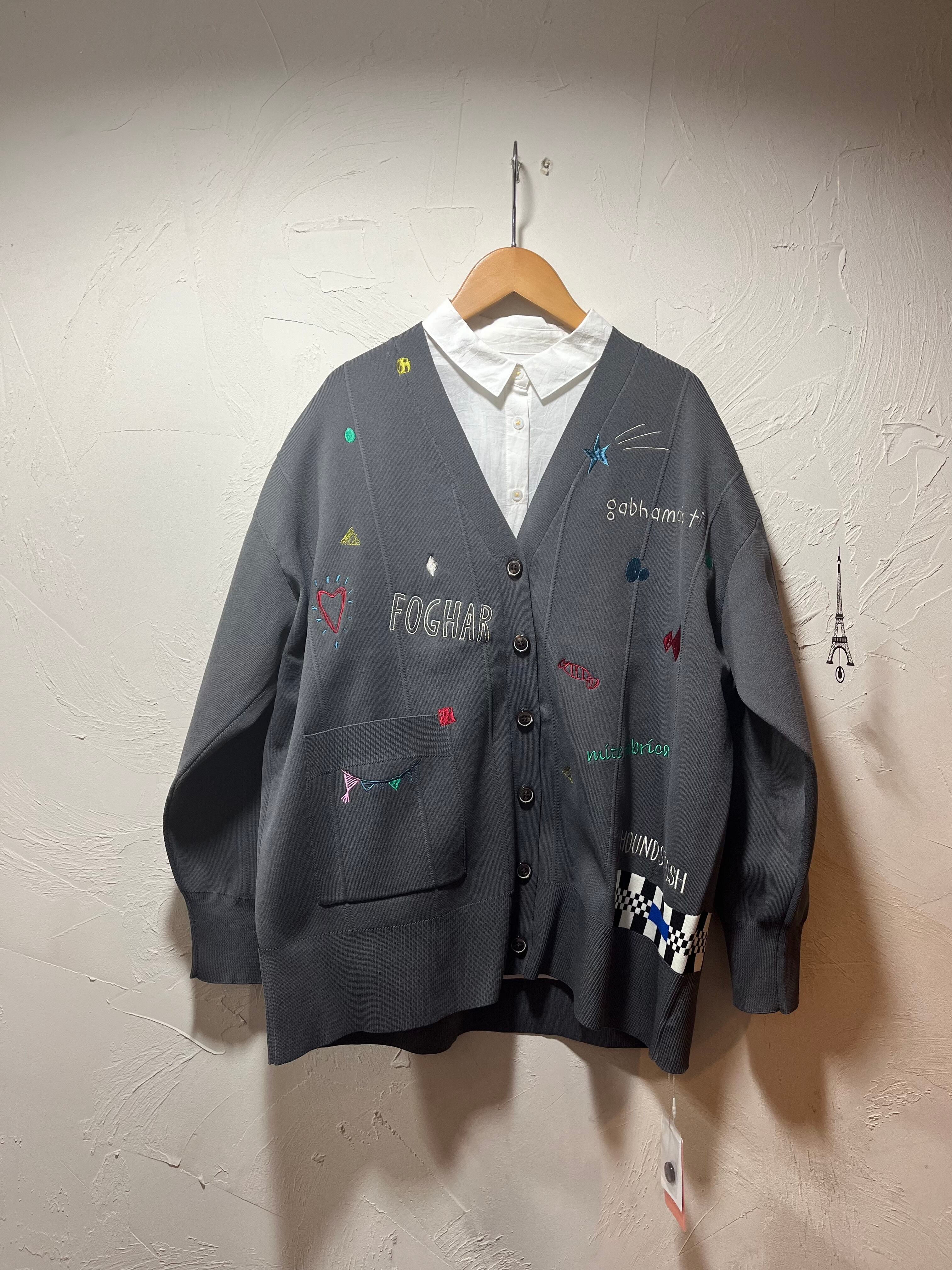 mite fabrica ステッカー刺繍Vネックニットカーディガン