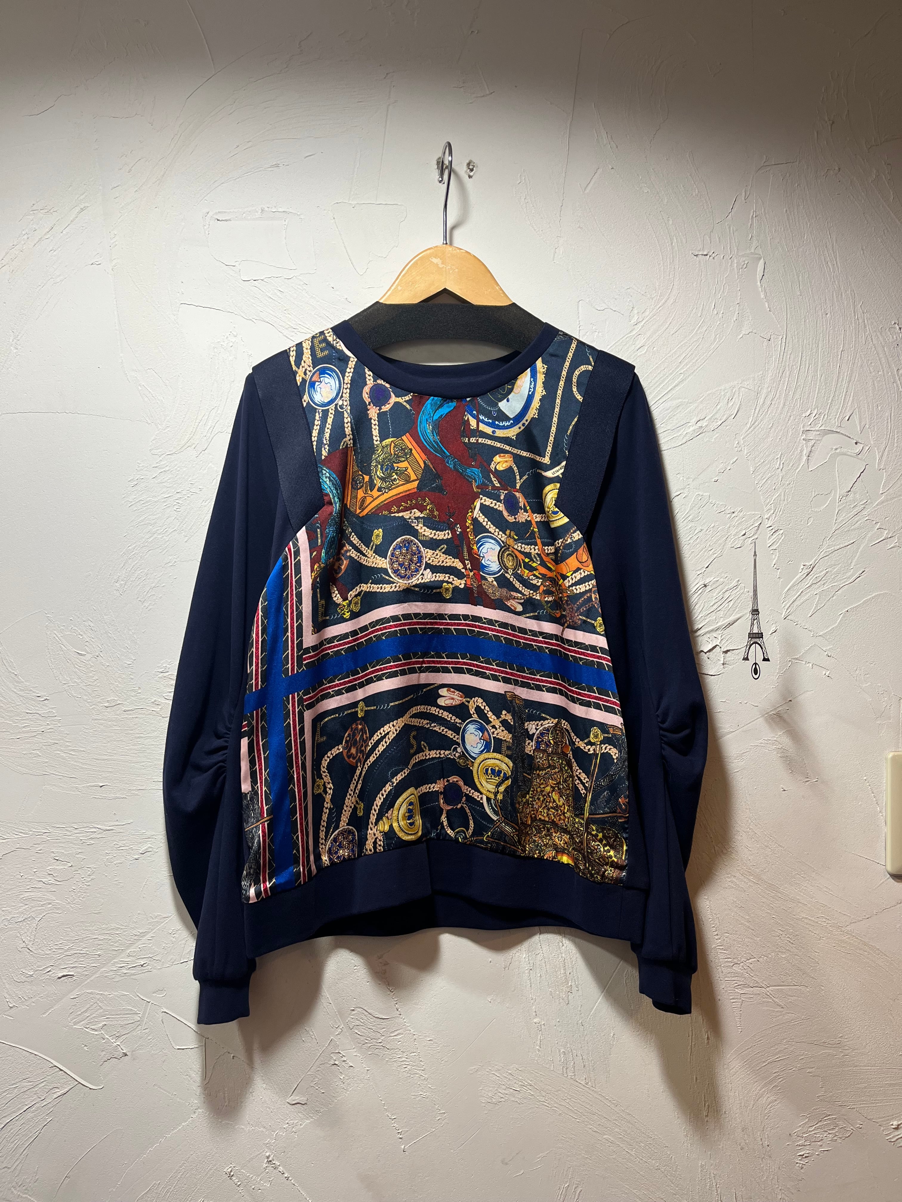 華やかなスカーフ柄のサテン生地が魅力のLes Babiesのスカーフ異素材デザインプルオーバー☆☆