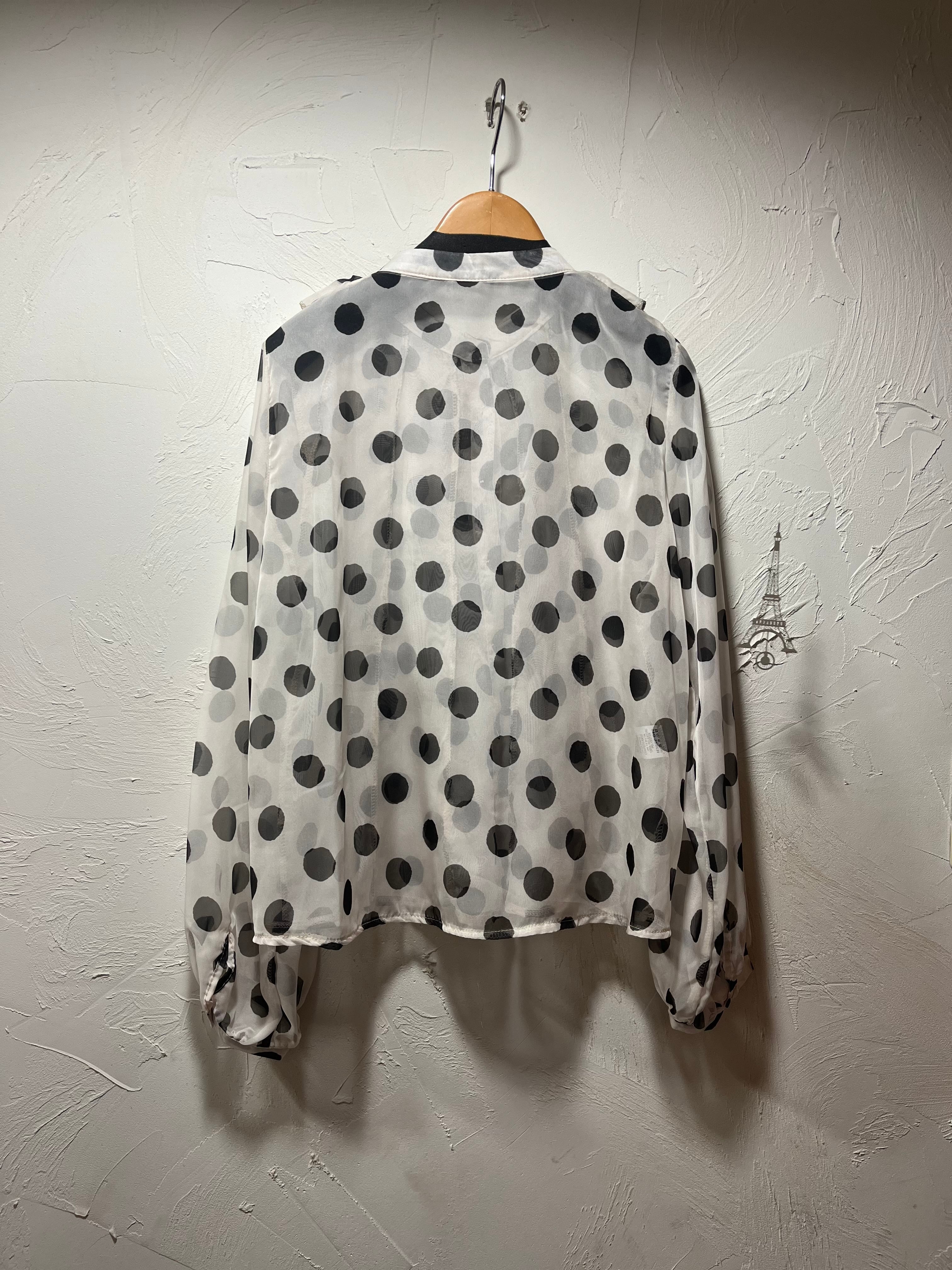 ソフトな発色のライトベージュに、愛らしい楕円デザインのドットプリントが映えるブラウス☆☆