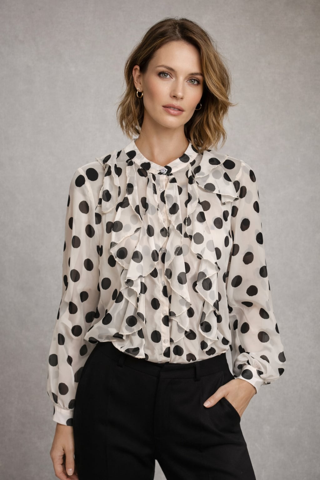 **Royal ドットプリントシフォンフリルブラウス☆**
