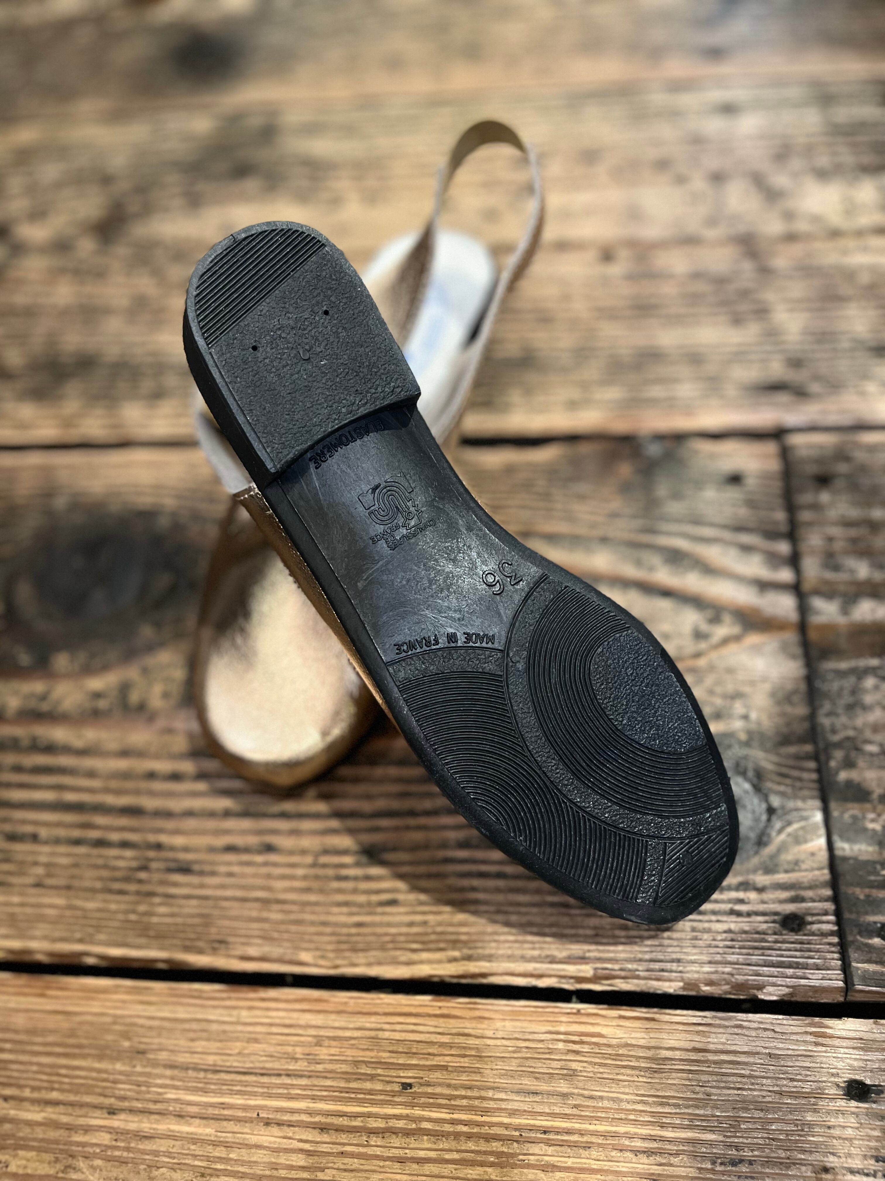 ソフトで軽いレザー素材を使用したJAVERFLEXのバックベルトレザーサンダル。