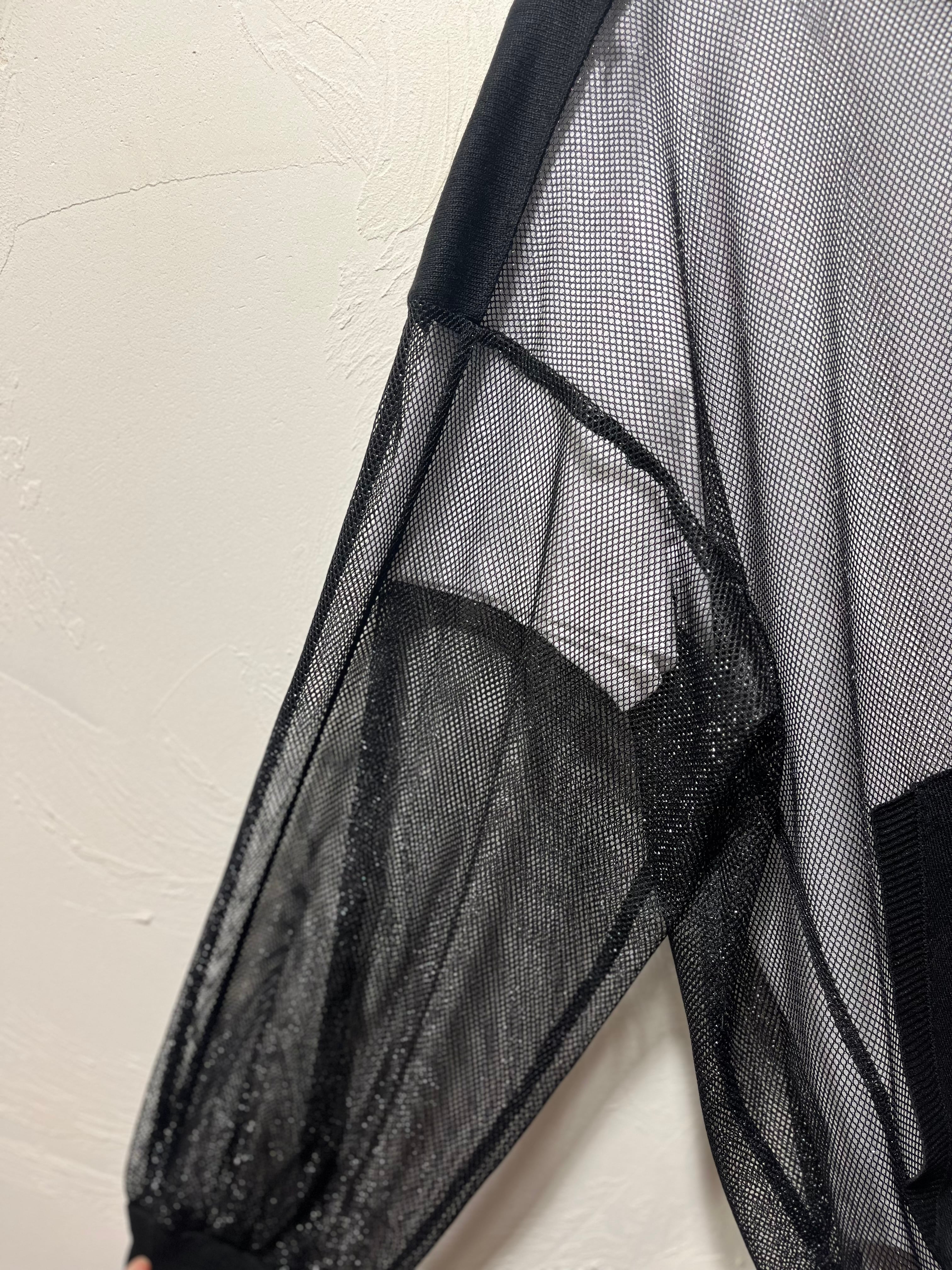 上品なラメの発色が光る、miiteのニットドッキングラメメッシュジャケット。