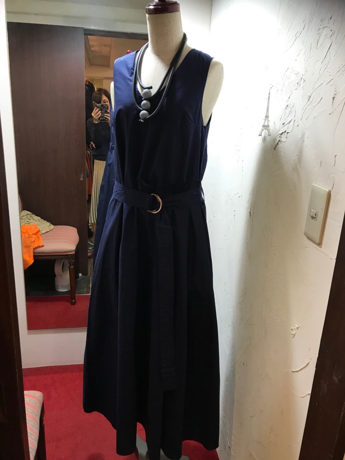 ダークネイビーカラーにきれいなAライン、Vネックの開きが大人にテイストに♡