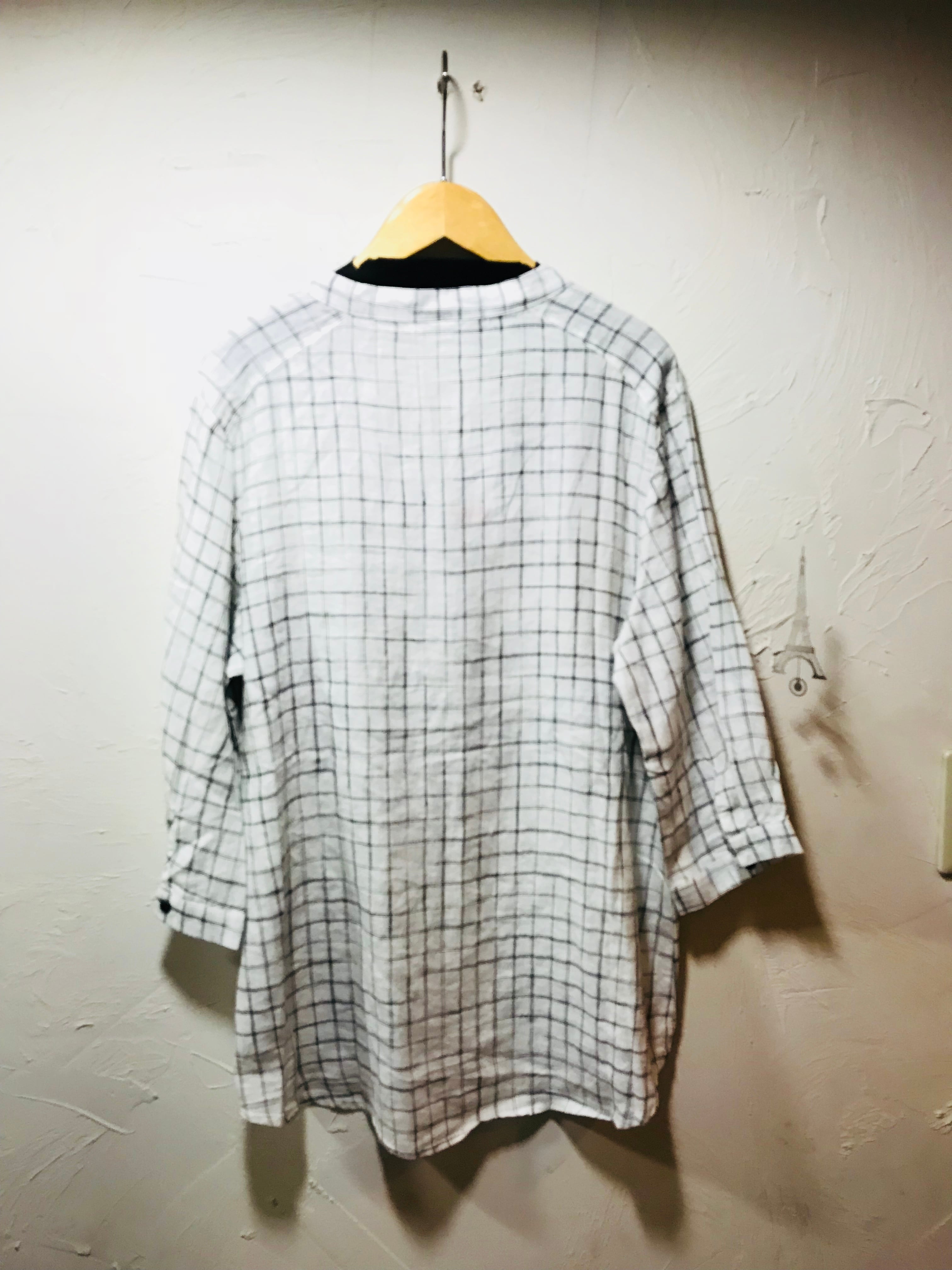 ナチュラルなテイストのコットン素材にソフトなタッチのウインドペン柄七部袖シャツ☆☆