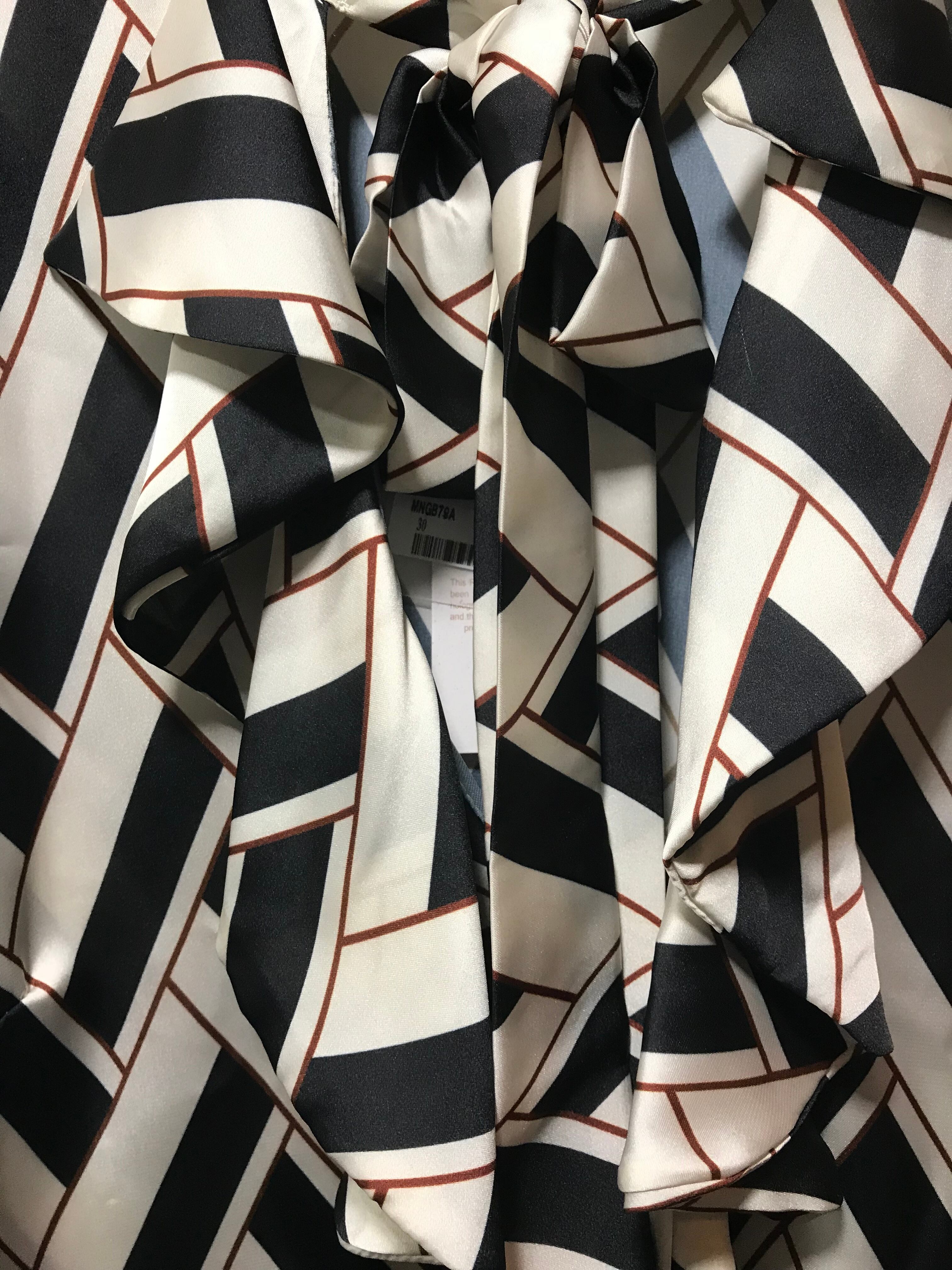 Rinasciment ジオメトリック柄 ボウタイフリルブラウス