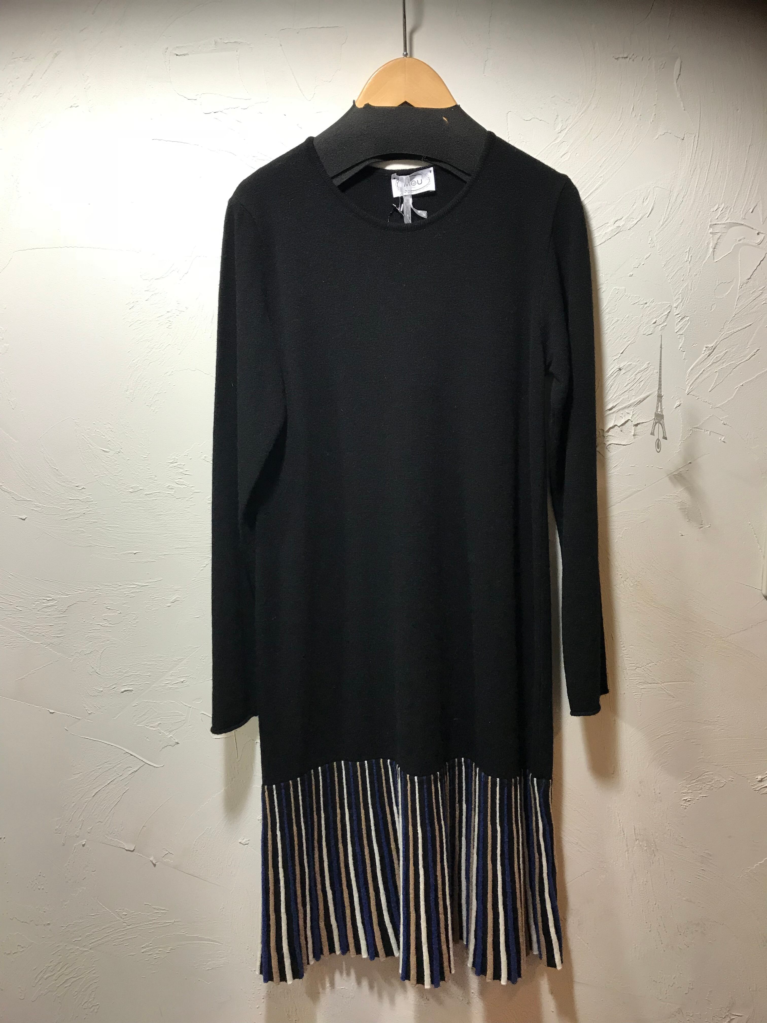 シックなブラックベースに、膝切り替えのミックスカラーストライプの色合いがキュートな1枚♡