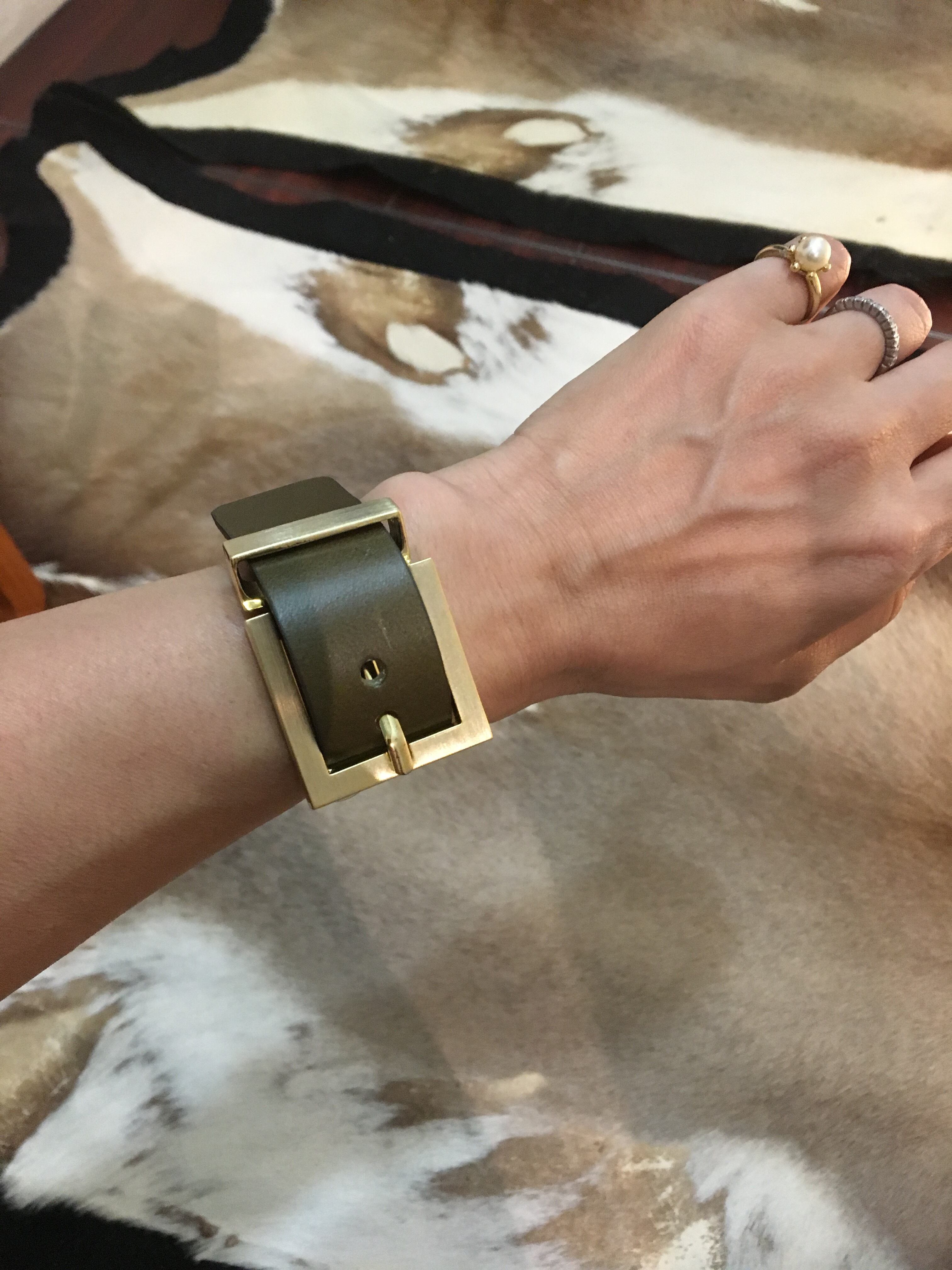 幅2.3センチ厚さ2ミリのボリュームのあるデザインです。マットゴールドカラーのバックルになります。シンプルなデザインでデイリーに着けれます。