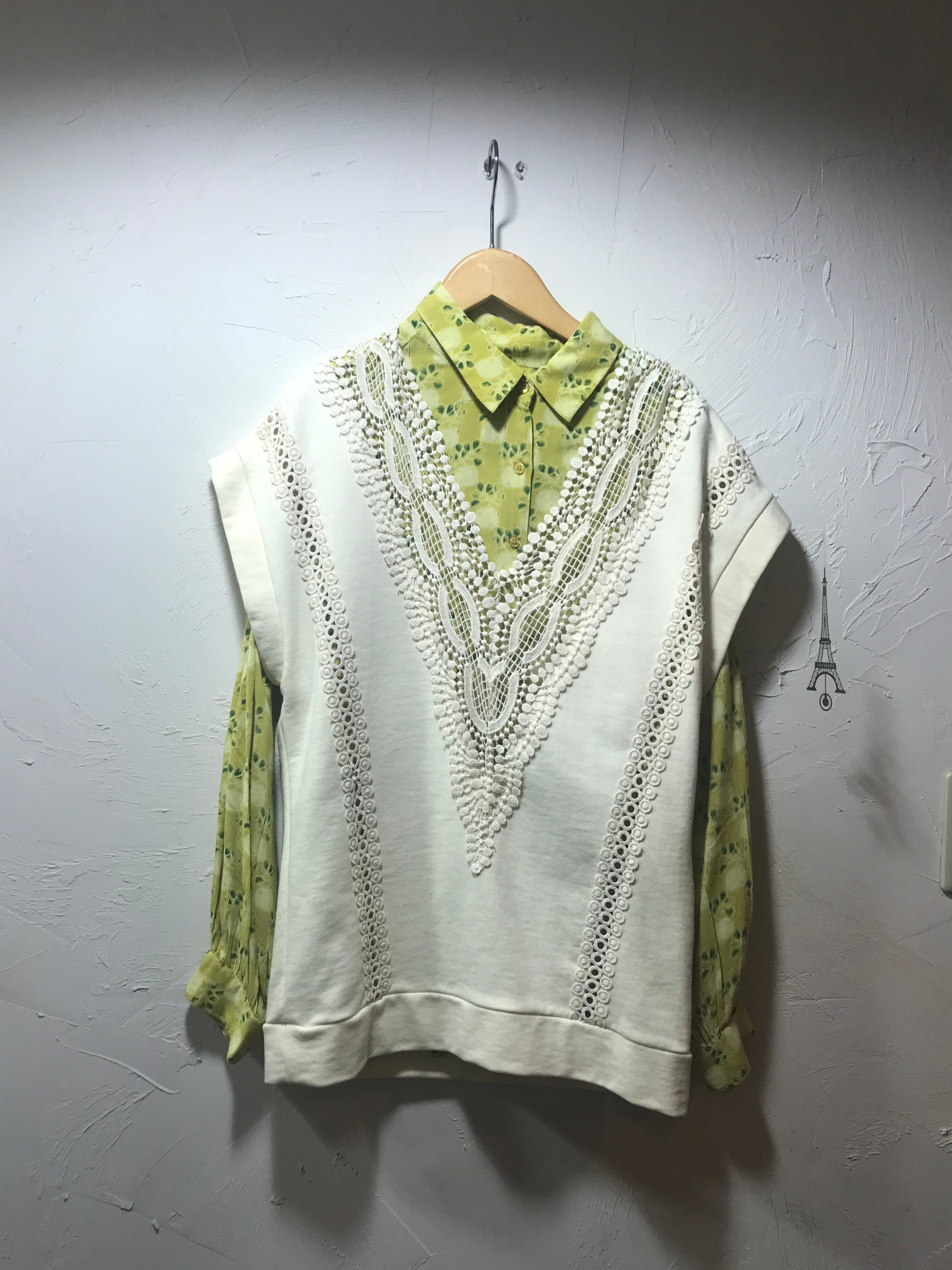 シーズンレスに使えるスエット素材に切替レースデザインがキュートなプルベスト☆☆