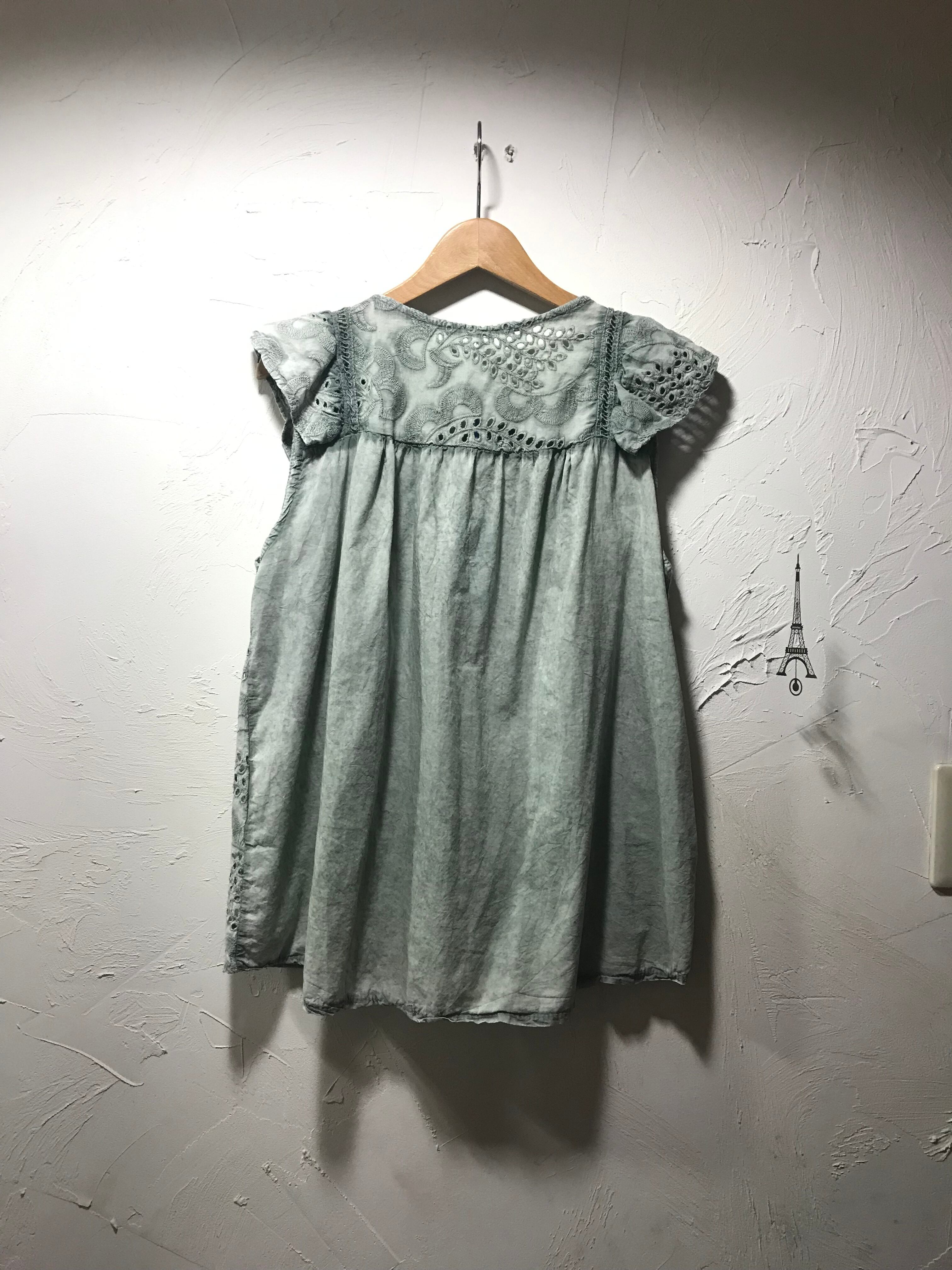 ボタニカル柄刺繍 コットンプルブラウス