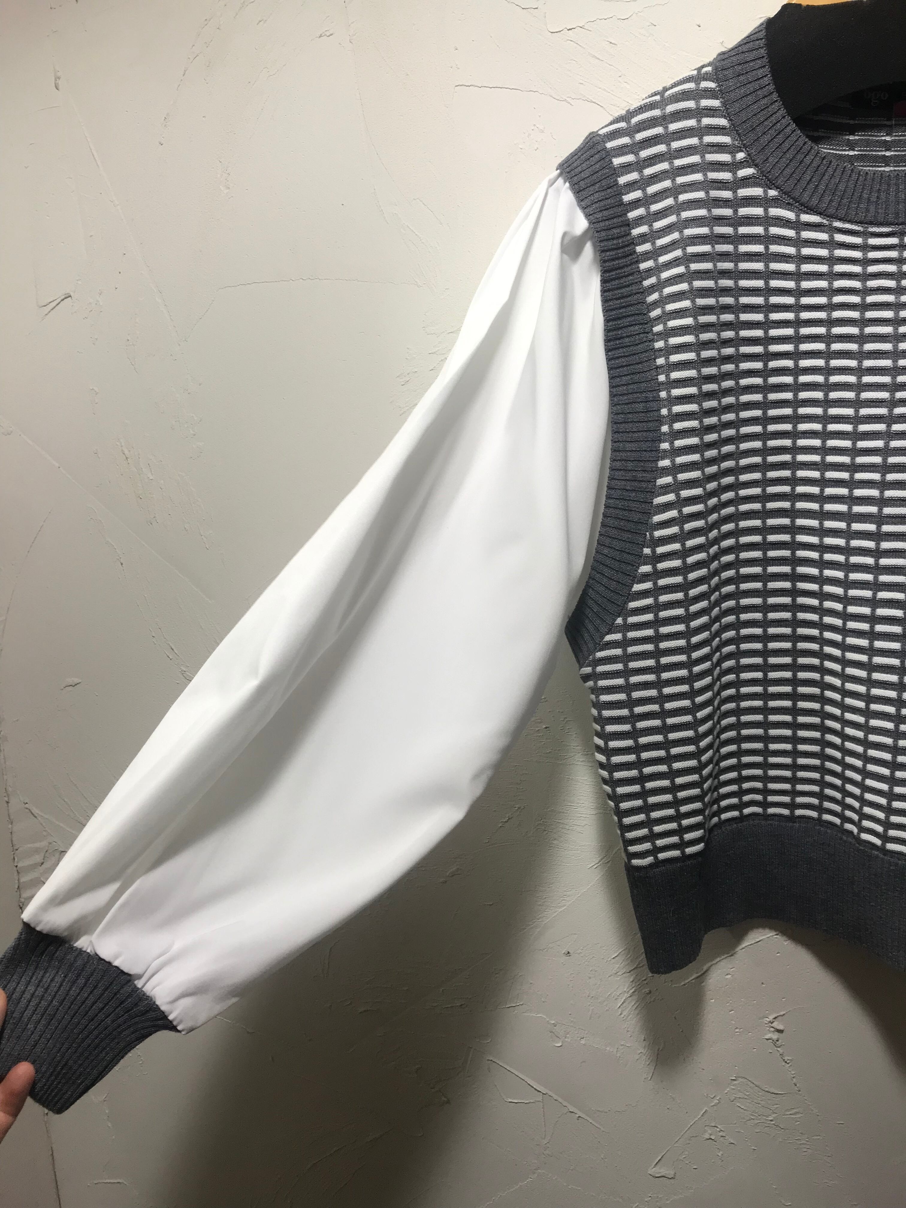 グレー×オフホワイトの配色が合わせやすい、ベストドッキングトップス♡