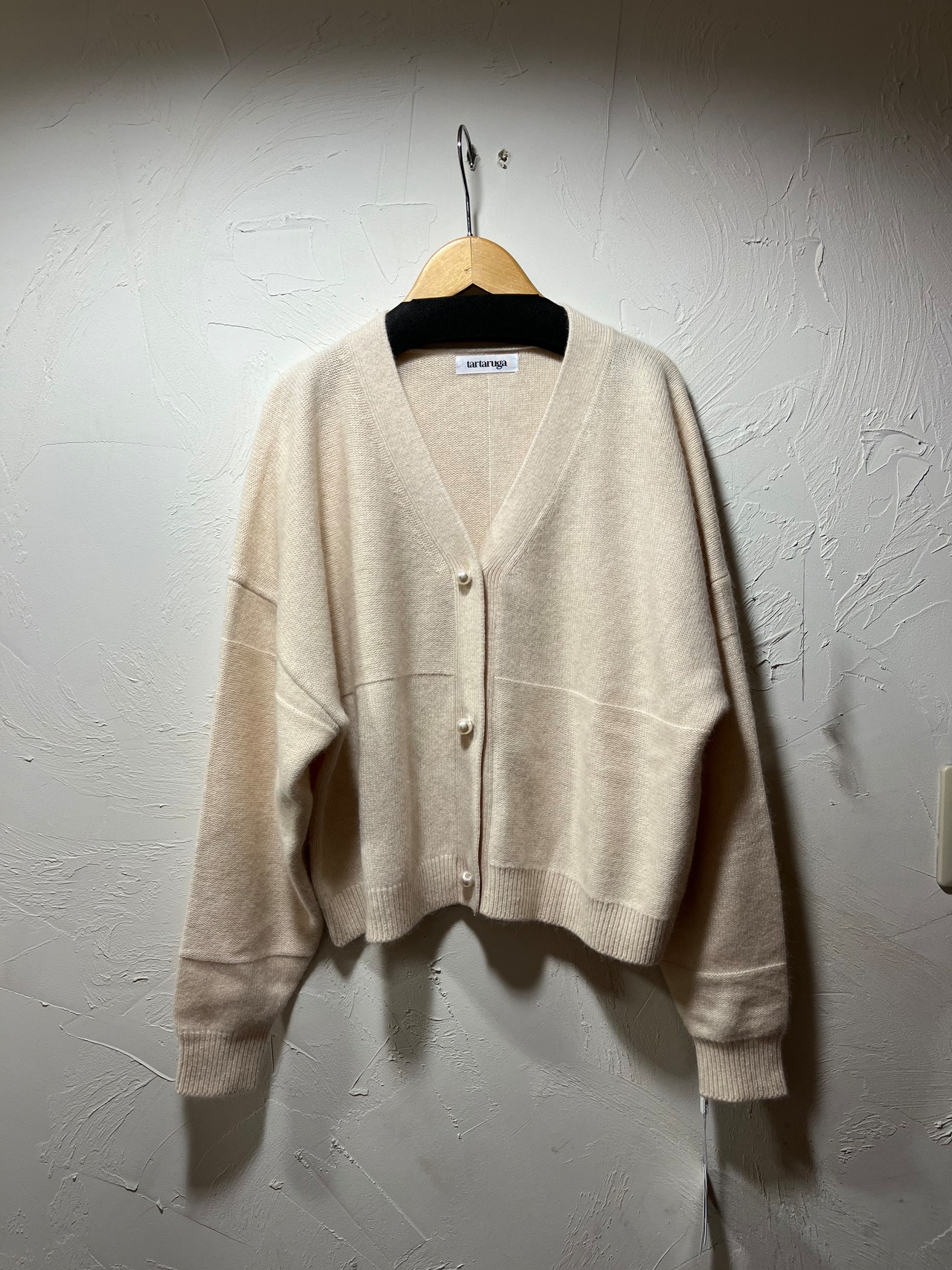 tartaruga パールモチーフ ラクーン毛ニットカーディガン