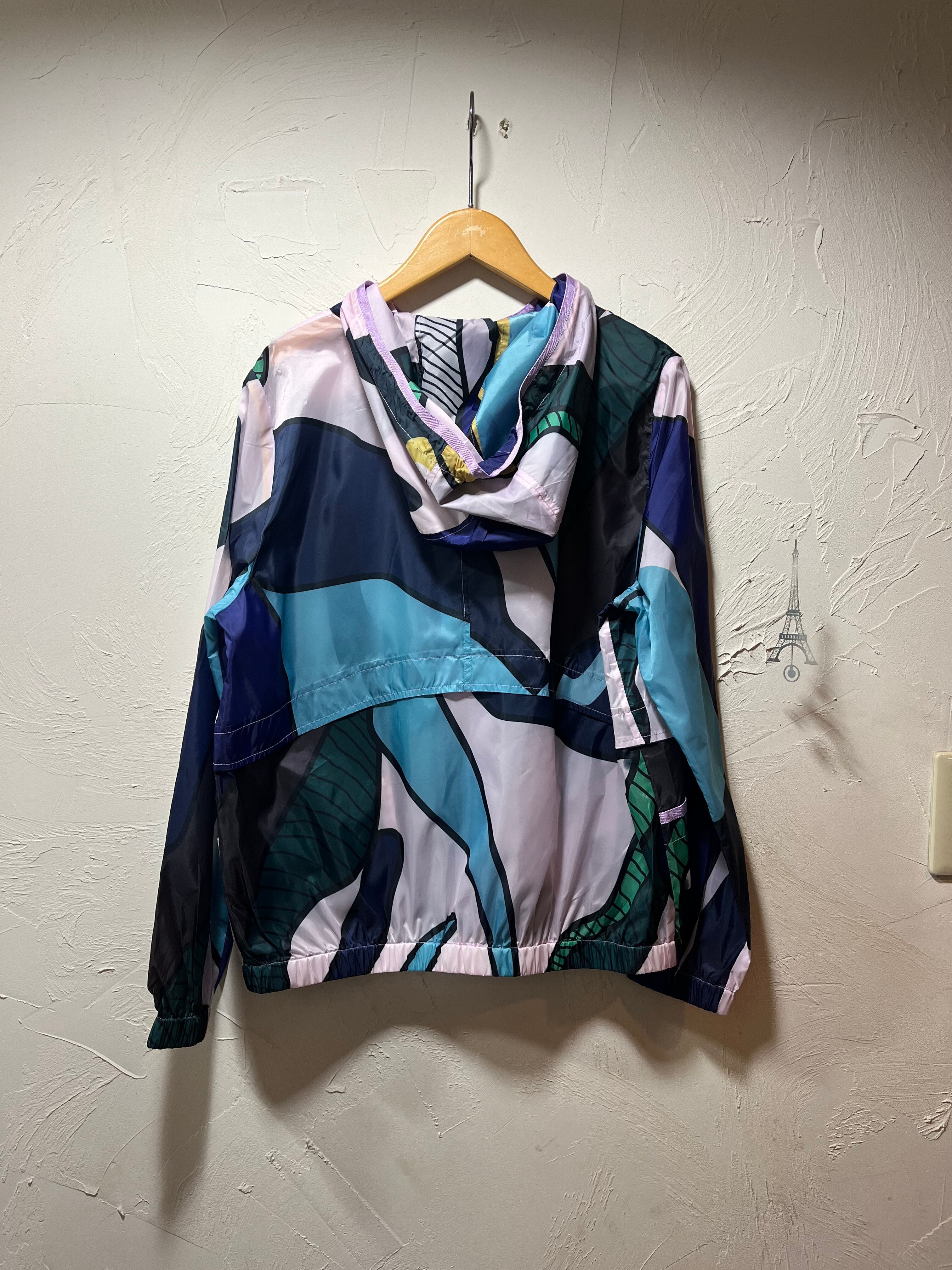 ヴィンテージ風のレトロなプリントが雰囲気あるライトブルゾン☆☆