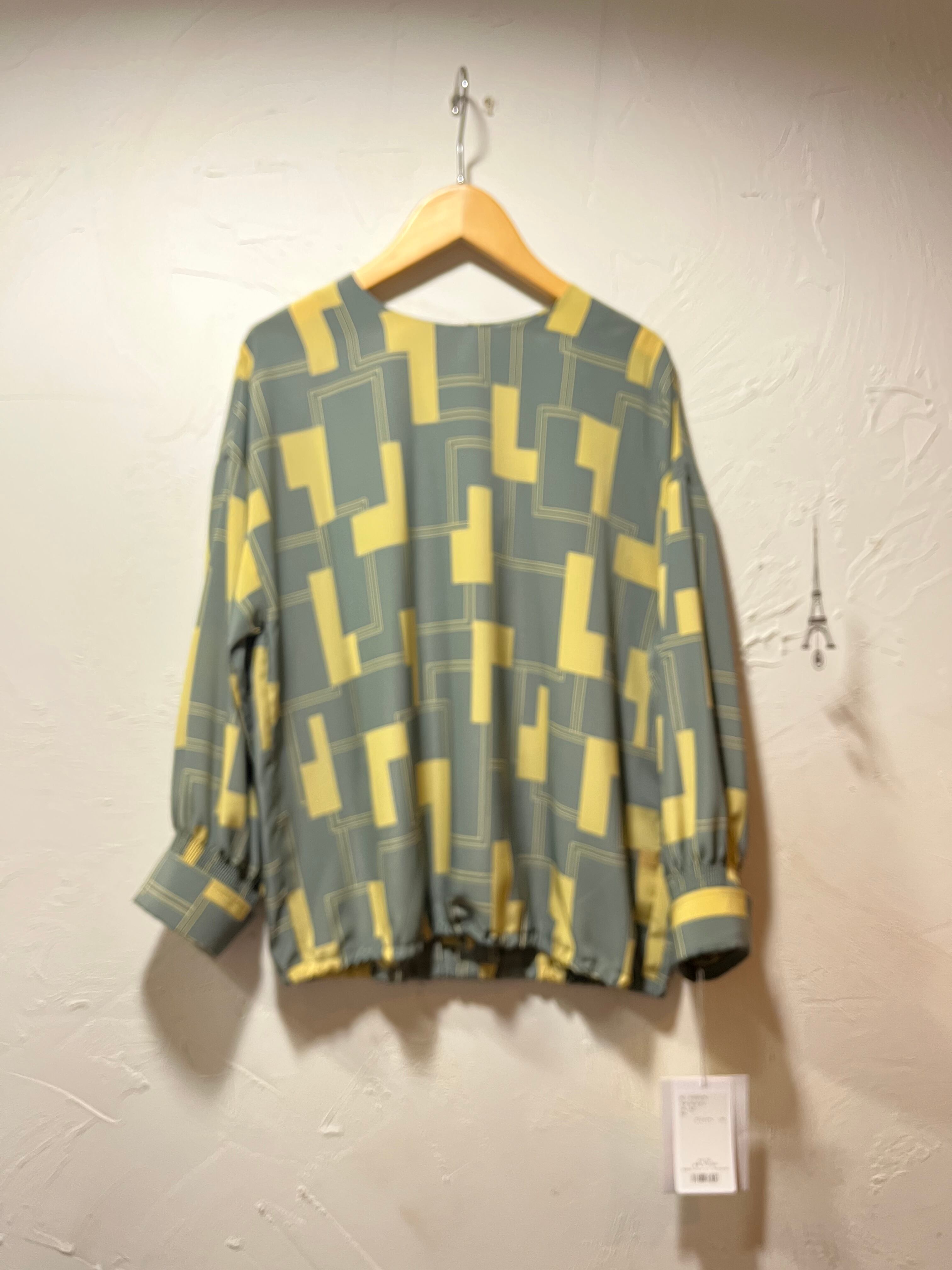 ヴィンテージ風のスモーキーな発色のグレー×イエローカラーの配色が素敵なプルブラウス☆☆