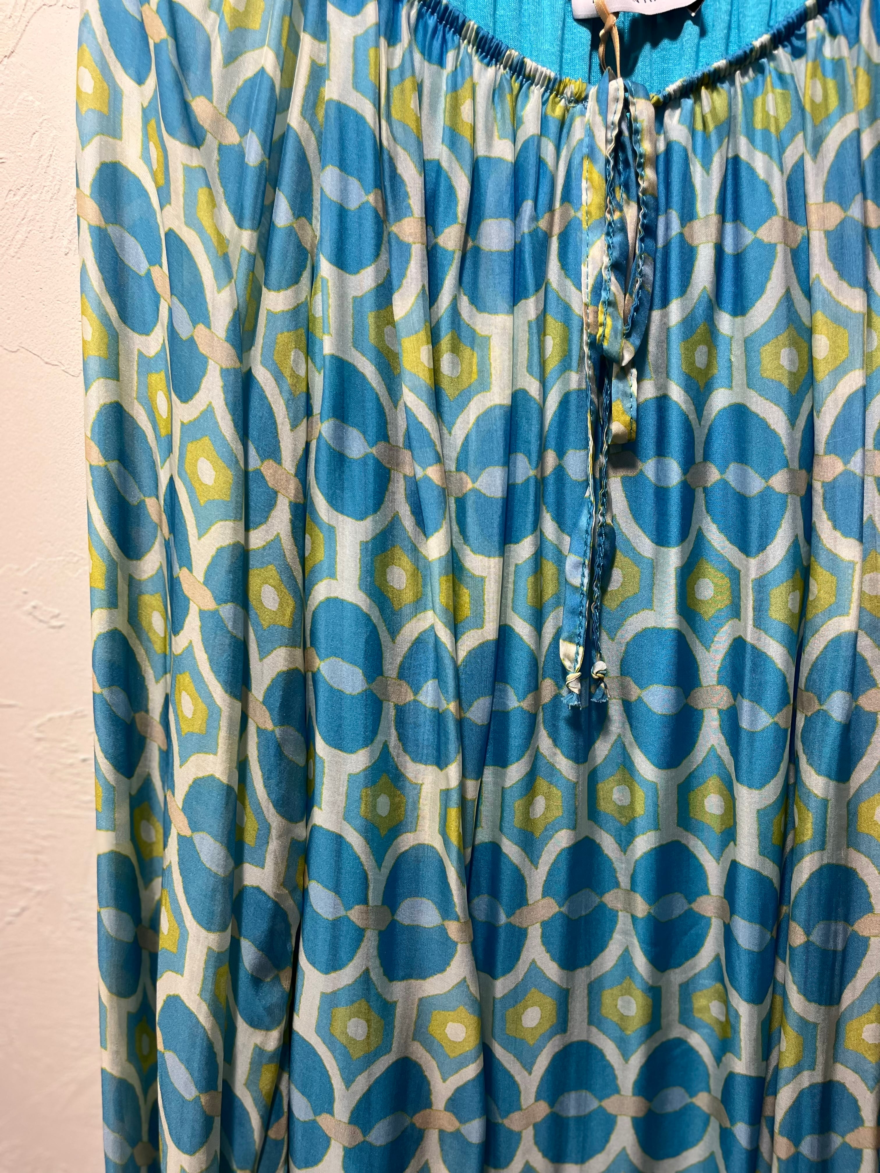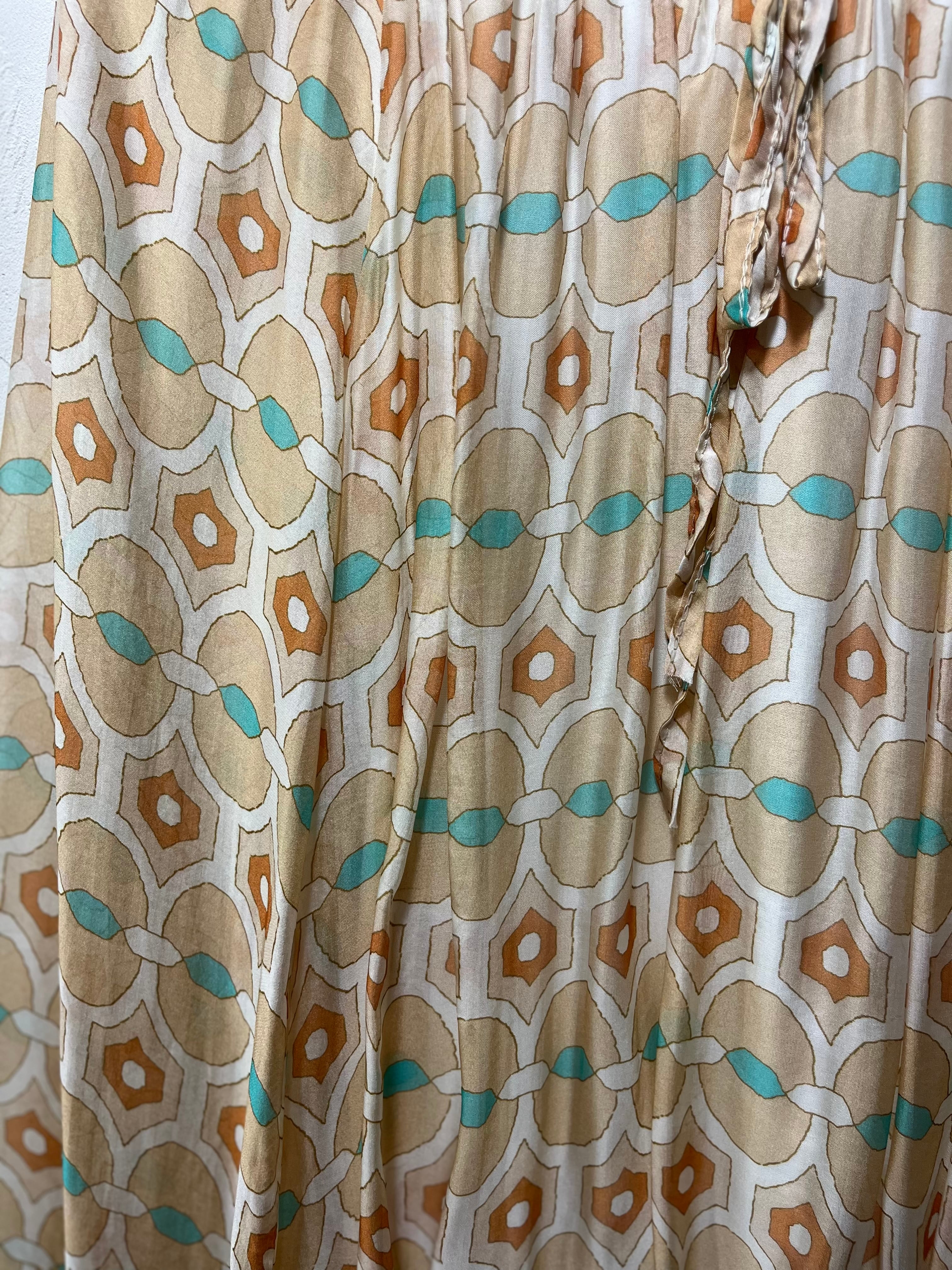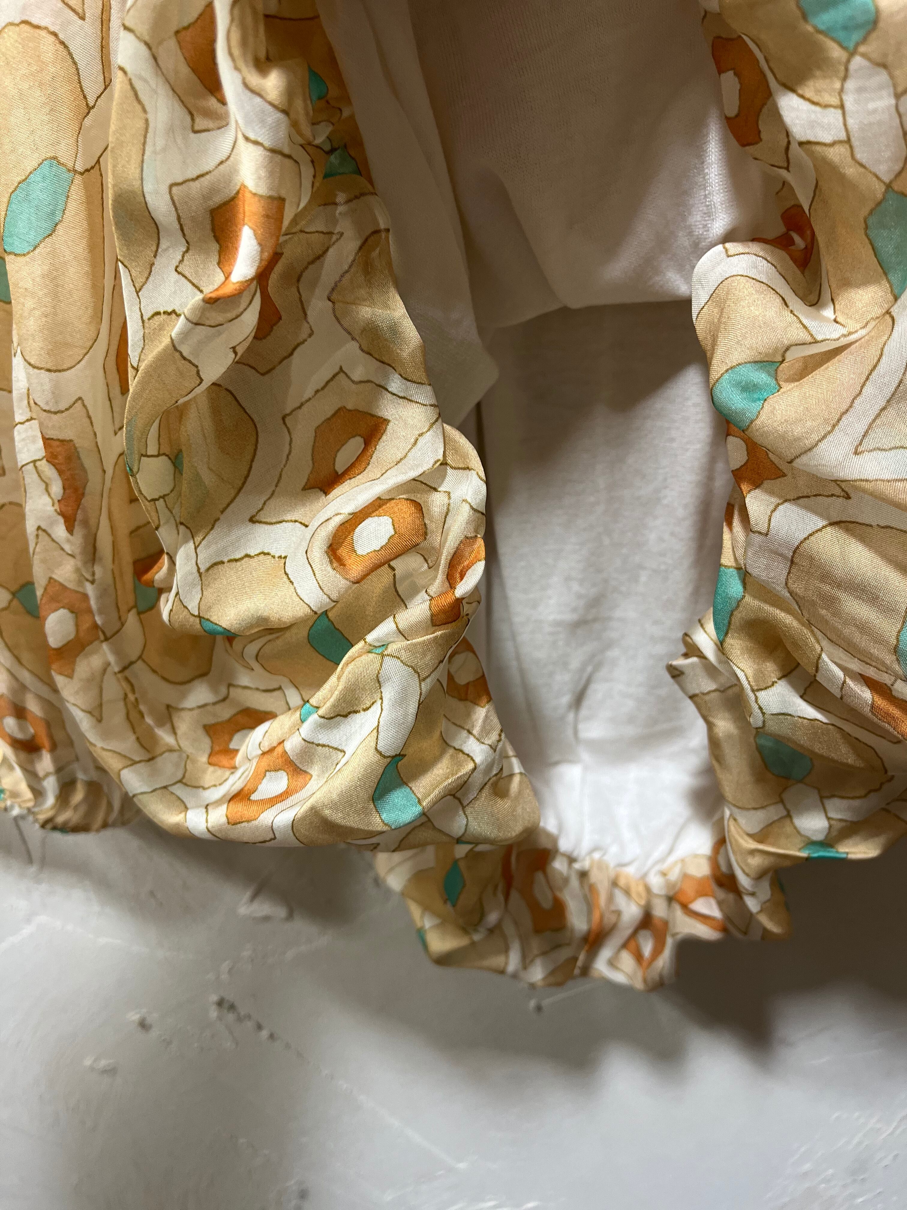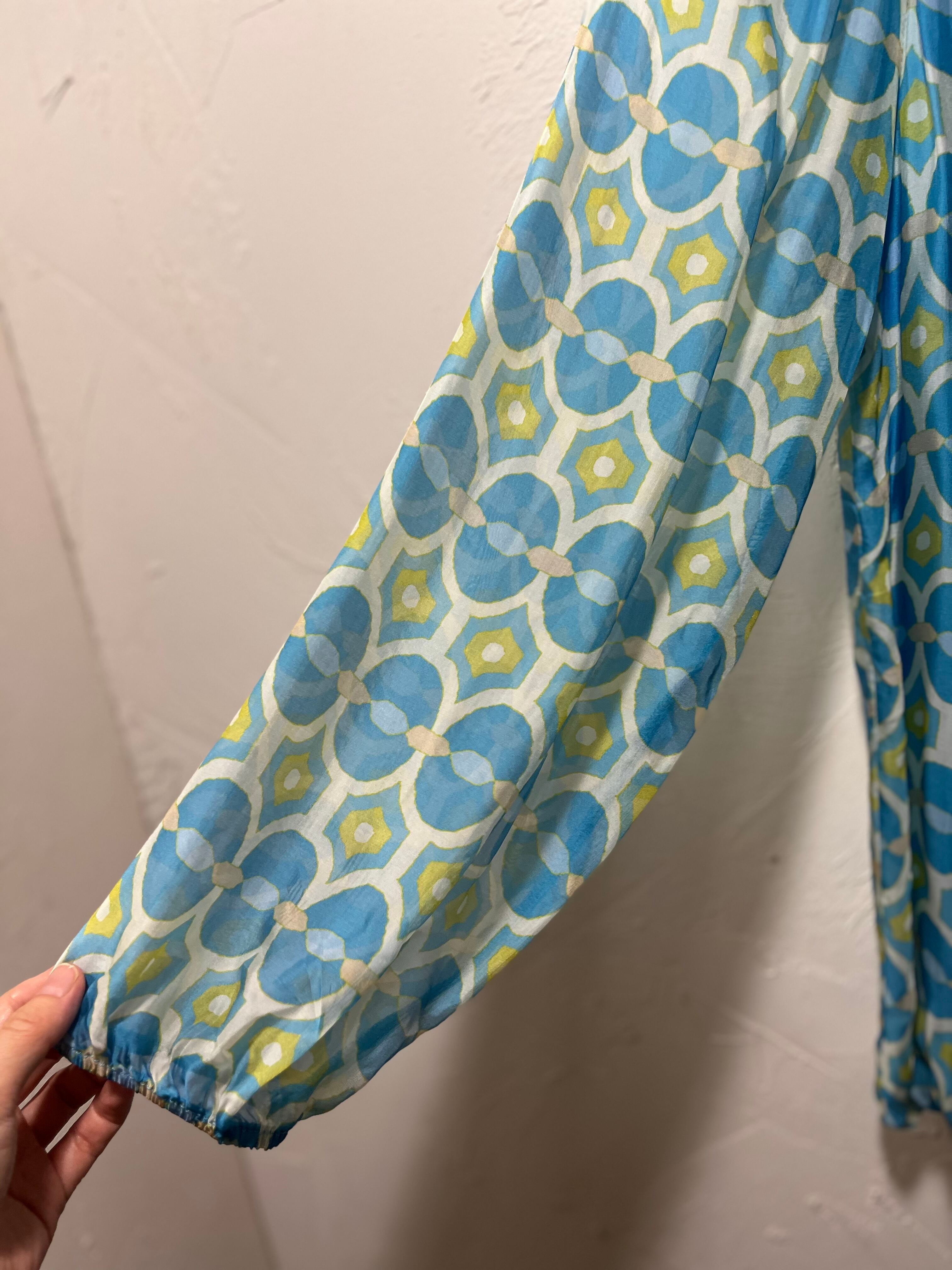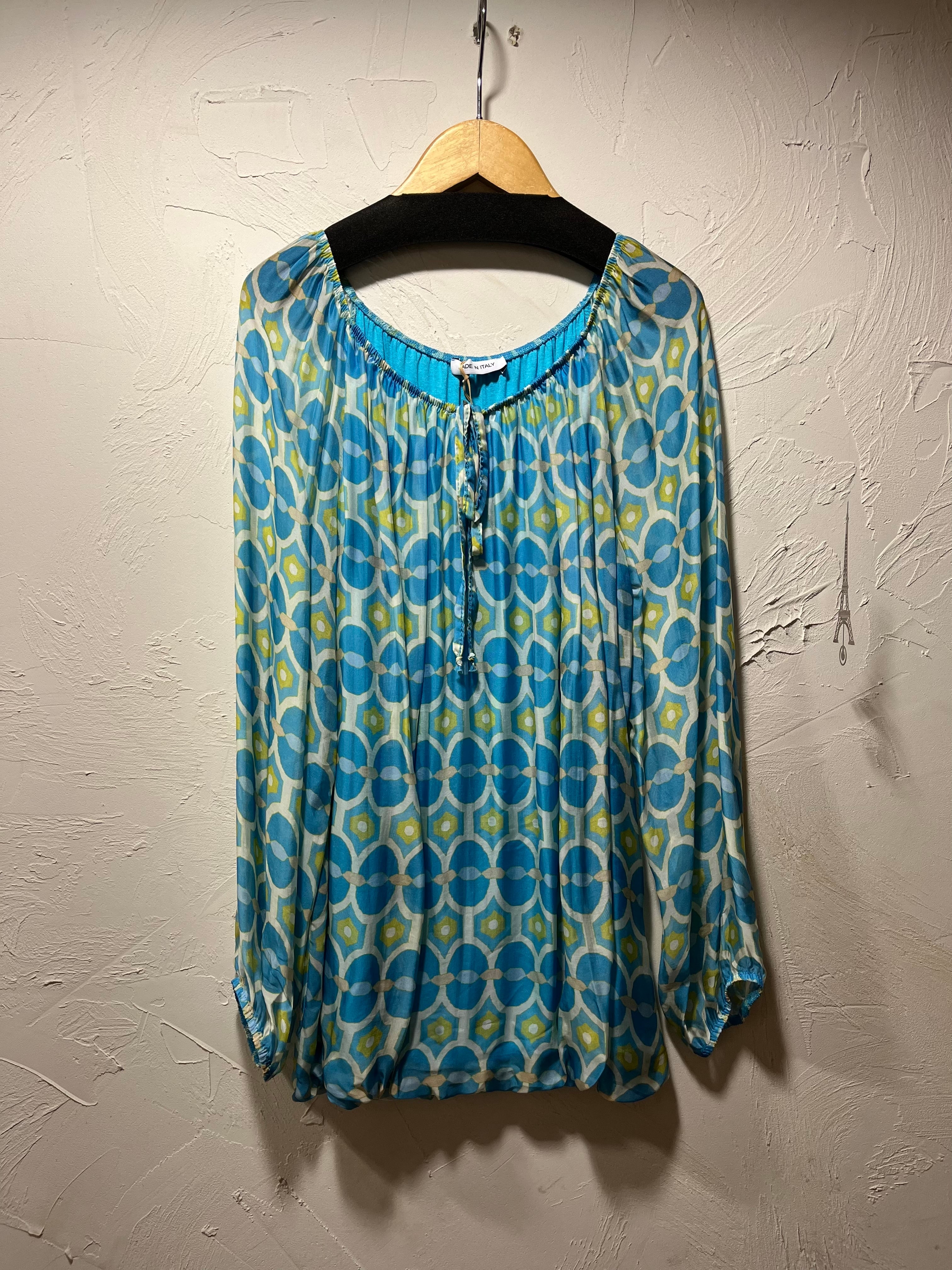 M&G シルク混 レトロプリントスモックブラウス