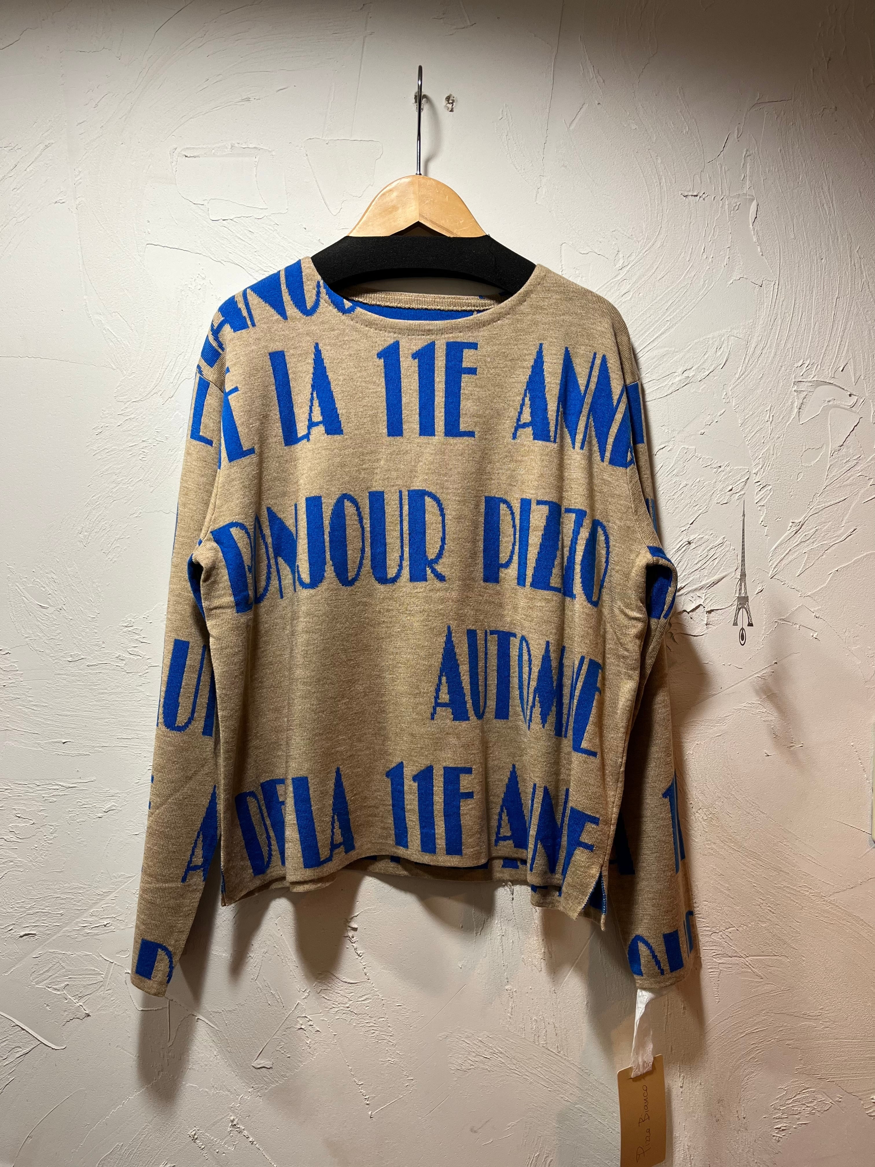 Pizzo Bianco セミウール ジャガードアルファベット柄ニット