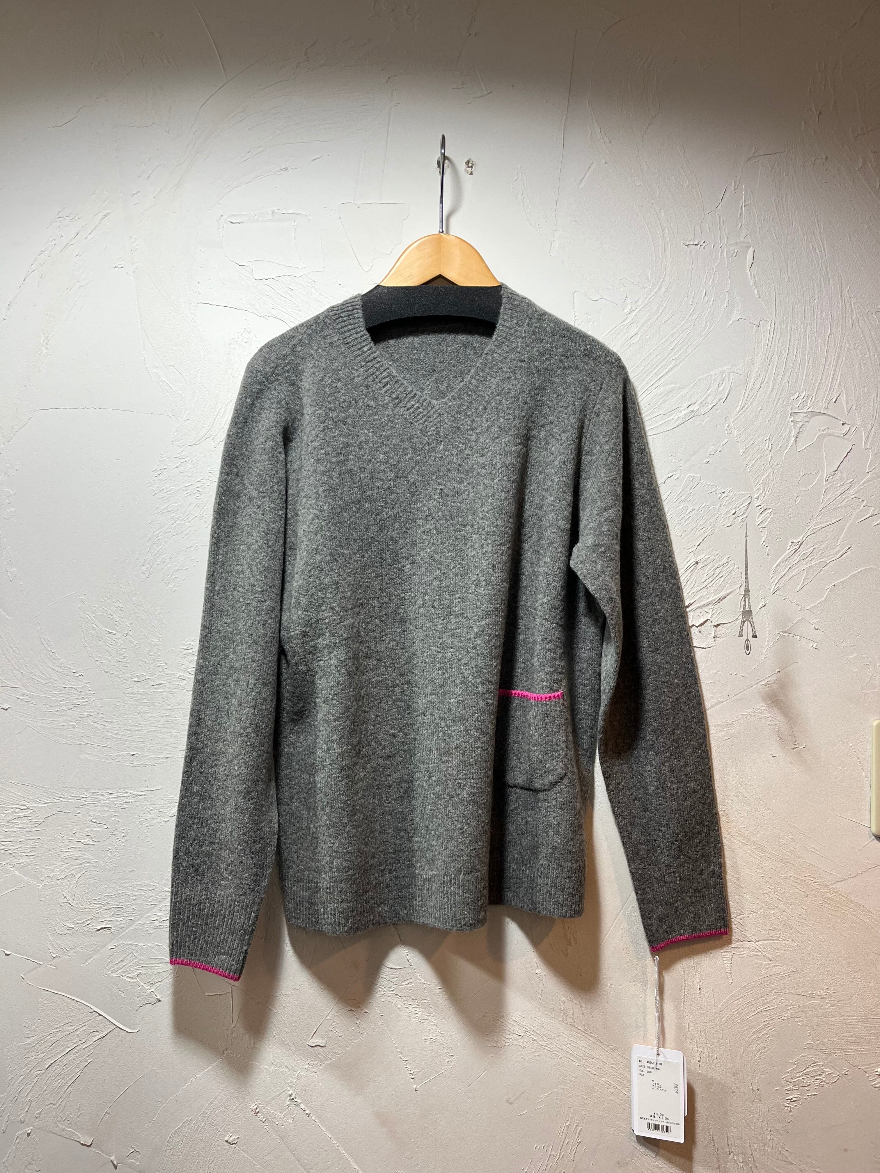 鮮やかなピンクカラーがポイントのmite fabrica Vネックウール混圧縮ニットは、ライトな圧縮ニット素材を使用し、軽くて暖かく伸縮性があり、着心地が良いです。