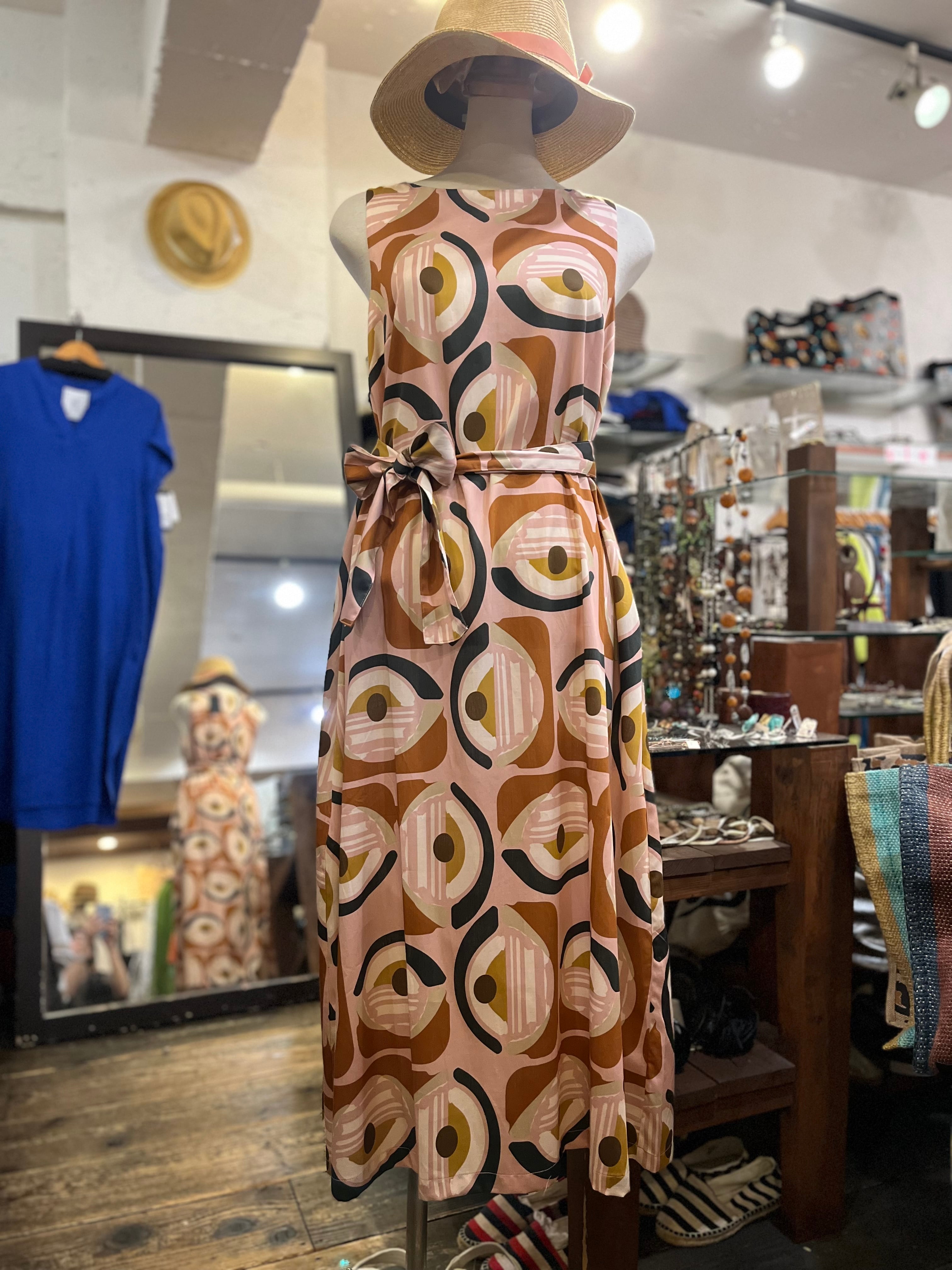 IL VENTO & LA SETA プリントコットン ノースリーブワンピース