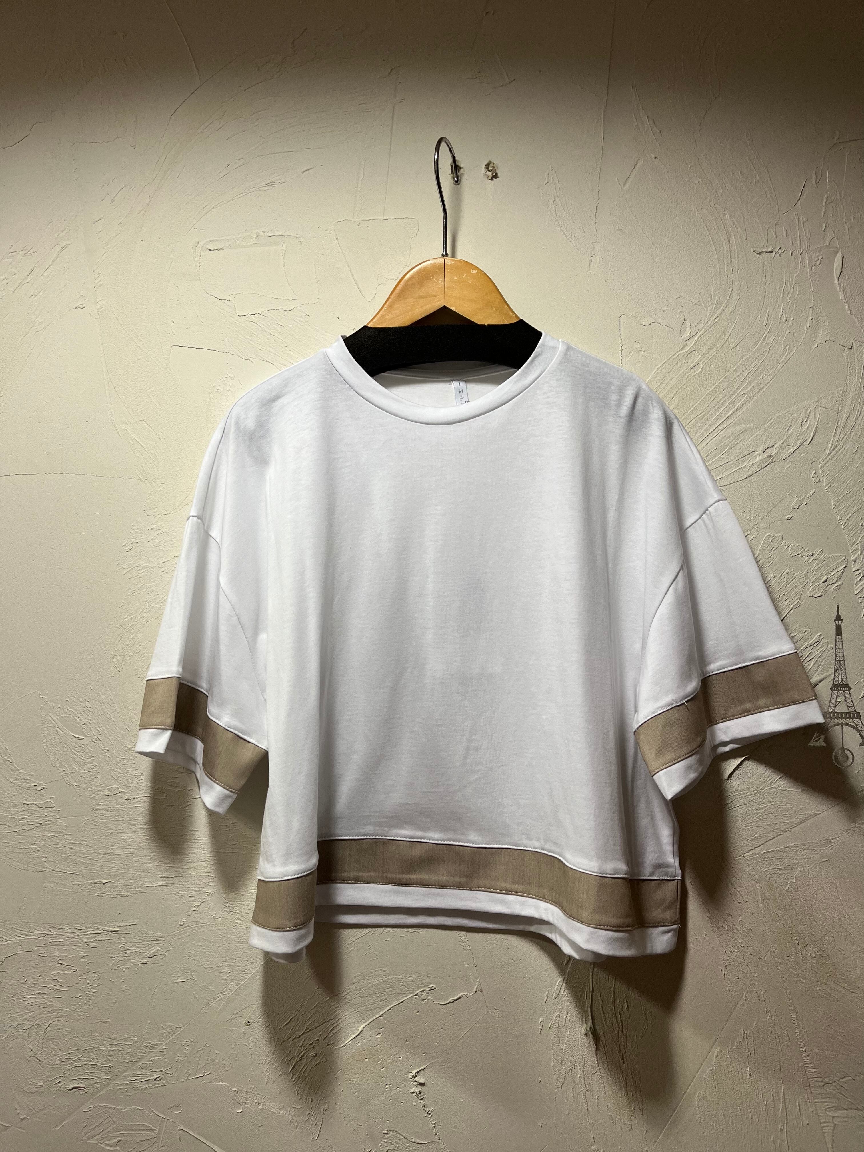 IMPERIAL ライン切替 ドロップショルダーTシャツ