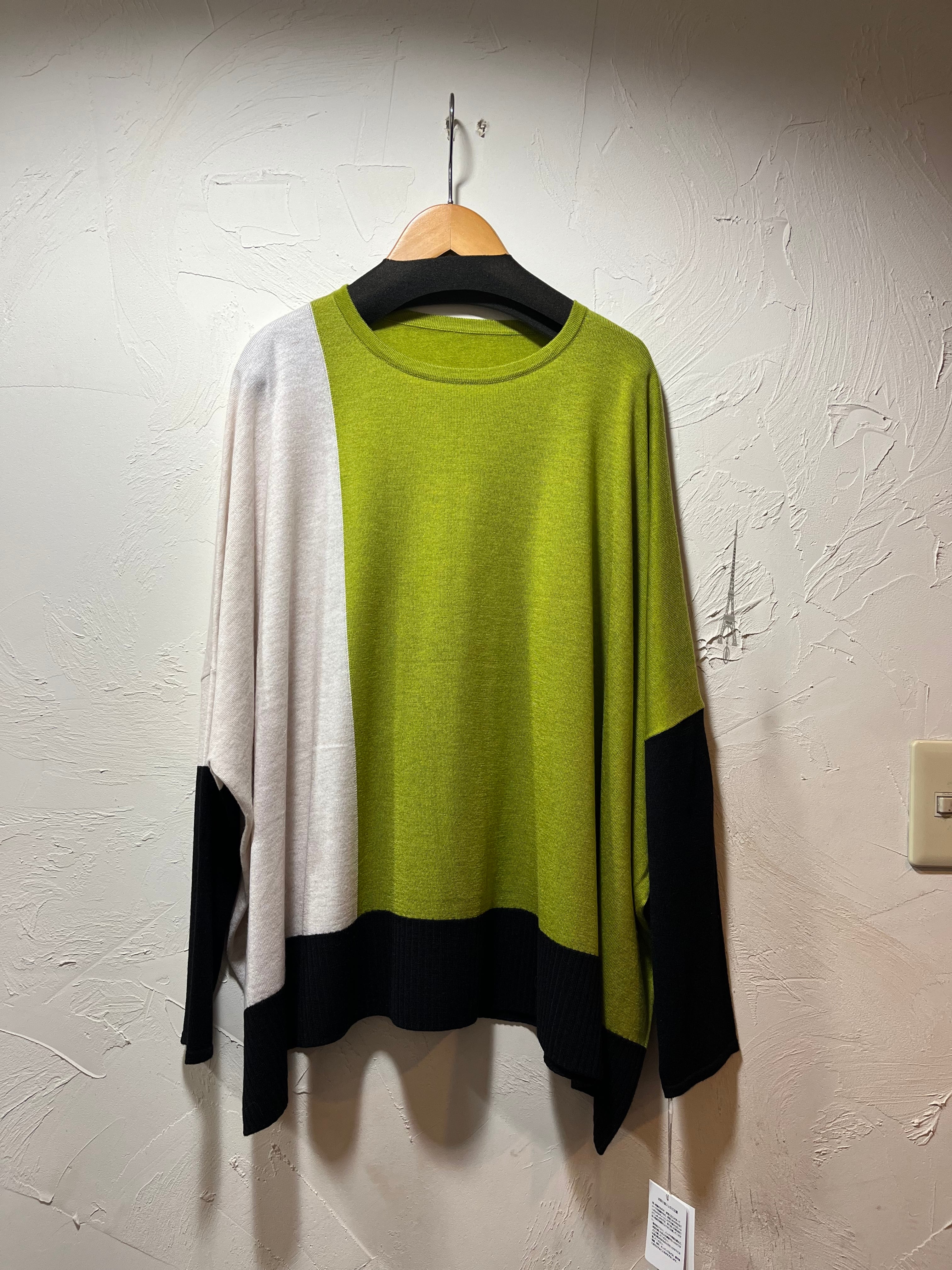 とろんとした落ち感が特徴のこのプルニットは、ゆるりとしたデザインでリラックス感を演出します。
