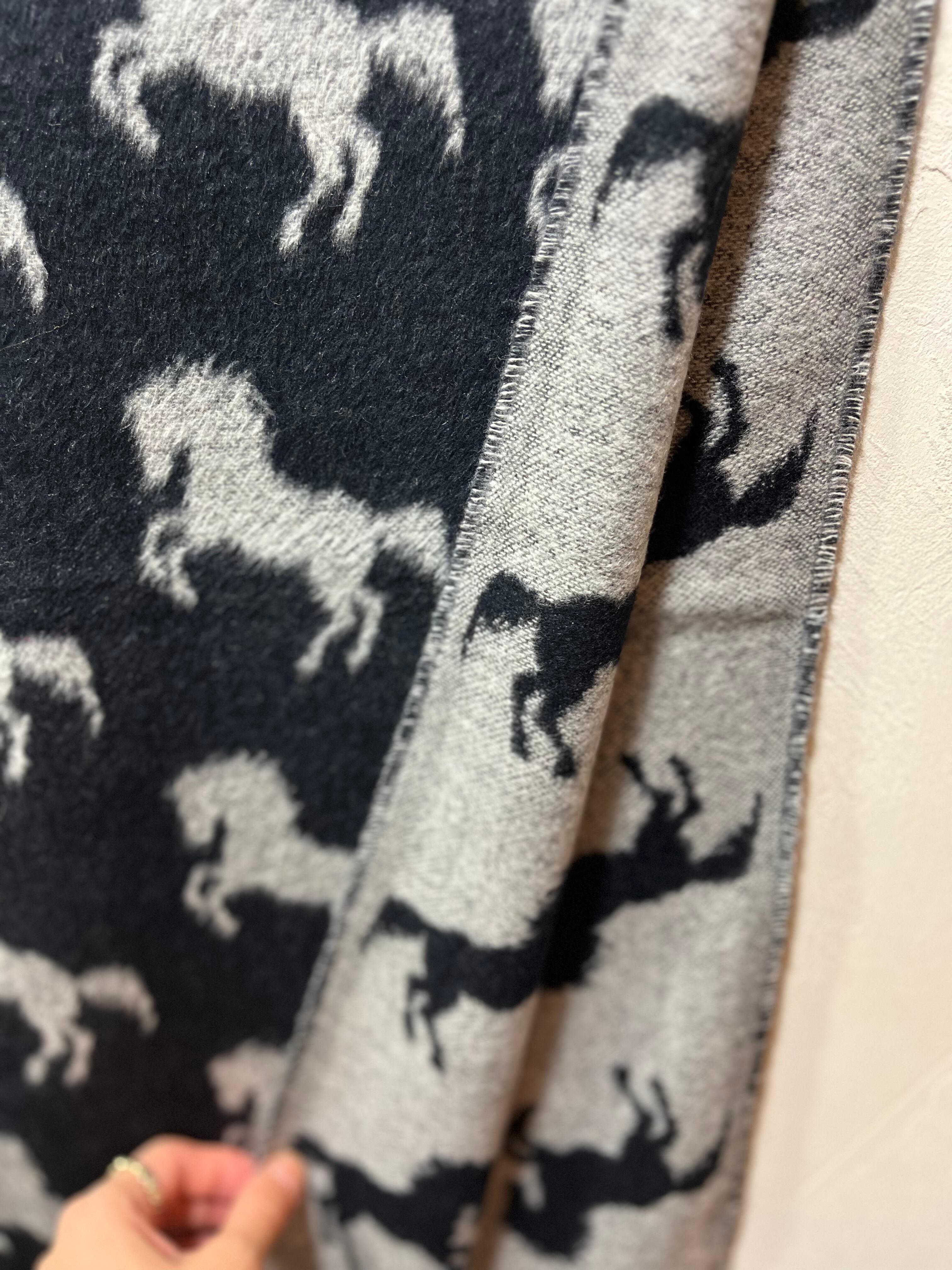 動きのあるホースプリントは、見る人に楽しい印象を与え、冬のスタイルを一層引き立てます。