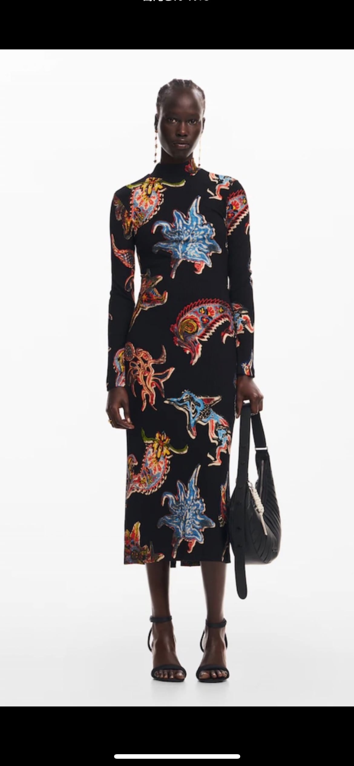 Desigtal ヴィンテージテイストプリント リブカットソーハイネックワンピース☆